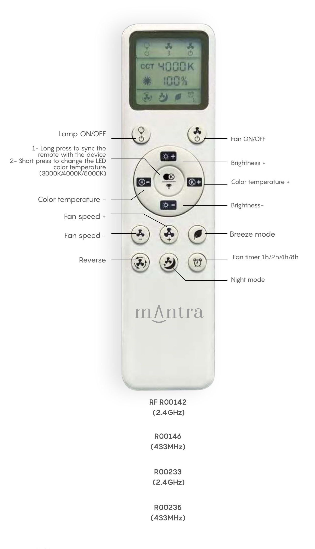 полимер в бял цвят, PC в цвят дърво, прозрачни перки, контрол с дистанционно, DC двигател на вентилатора 40W, функция лято/зима, ССТ 2700-5000К