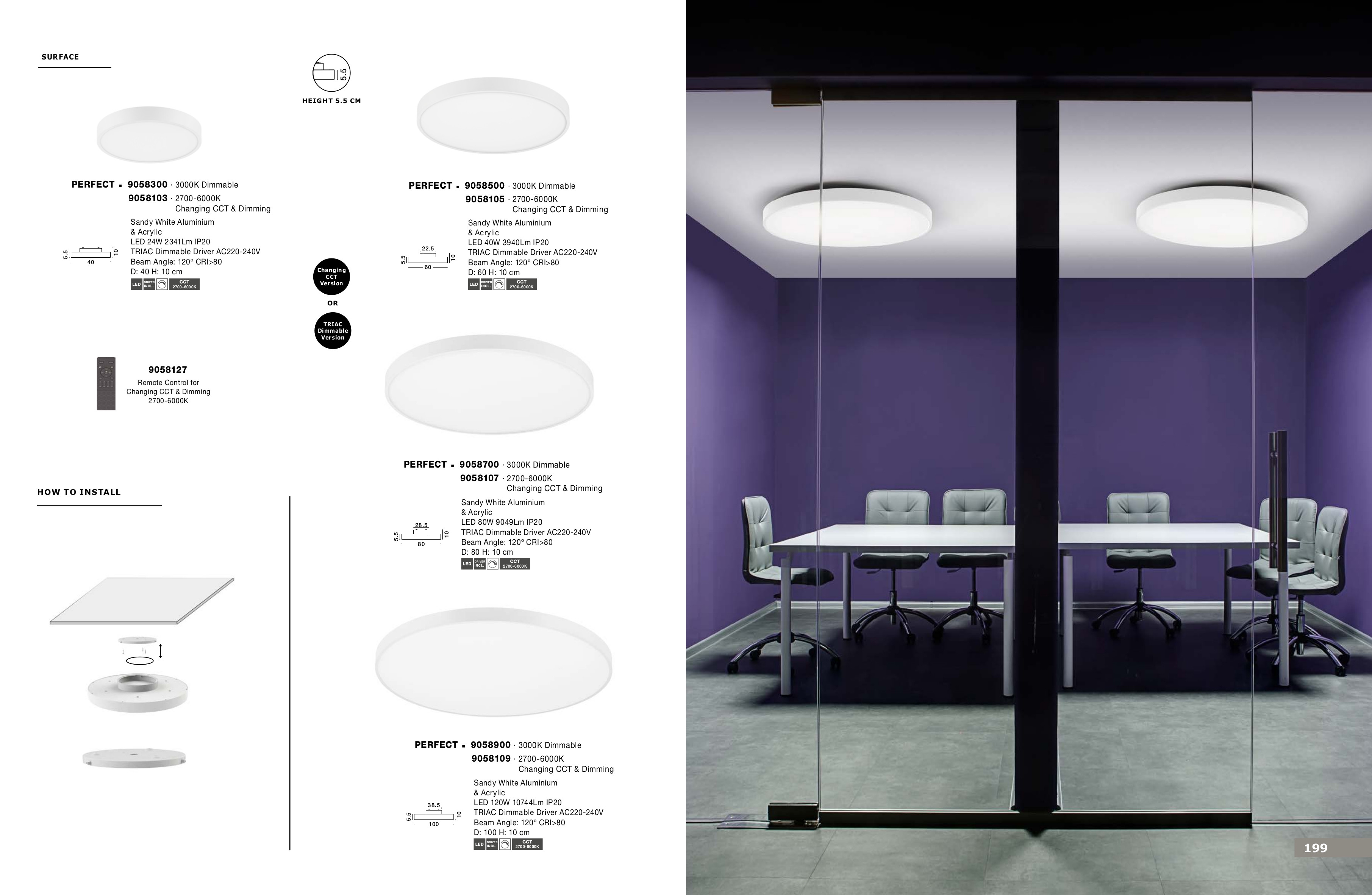 алуминий в пясъчно бял цвят, акрил, смяна на цветната температура 2700-6000K и димиране става с дистанционно 9058127 (не е включено в комплекта)