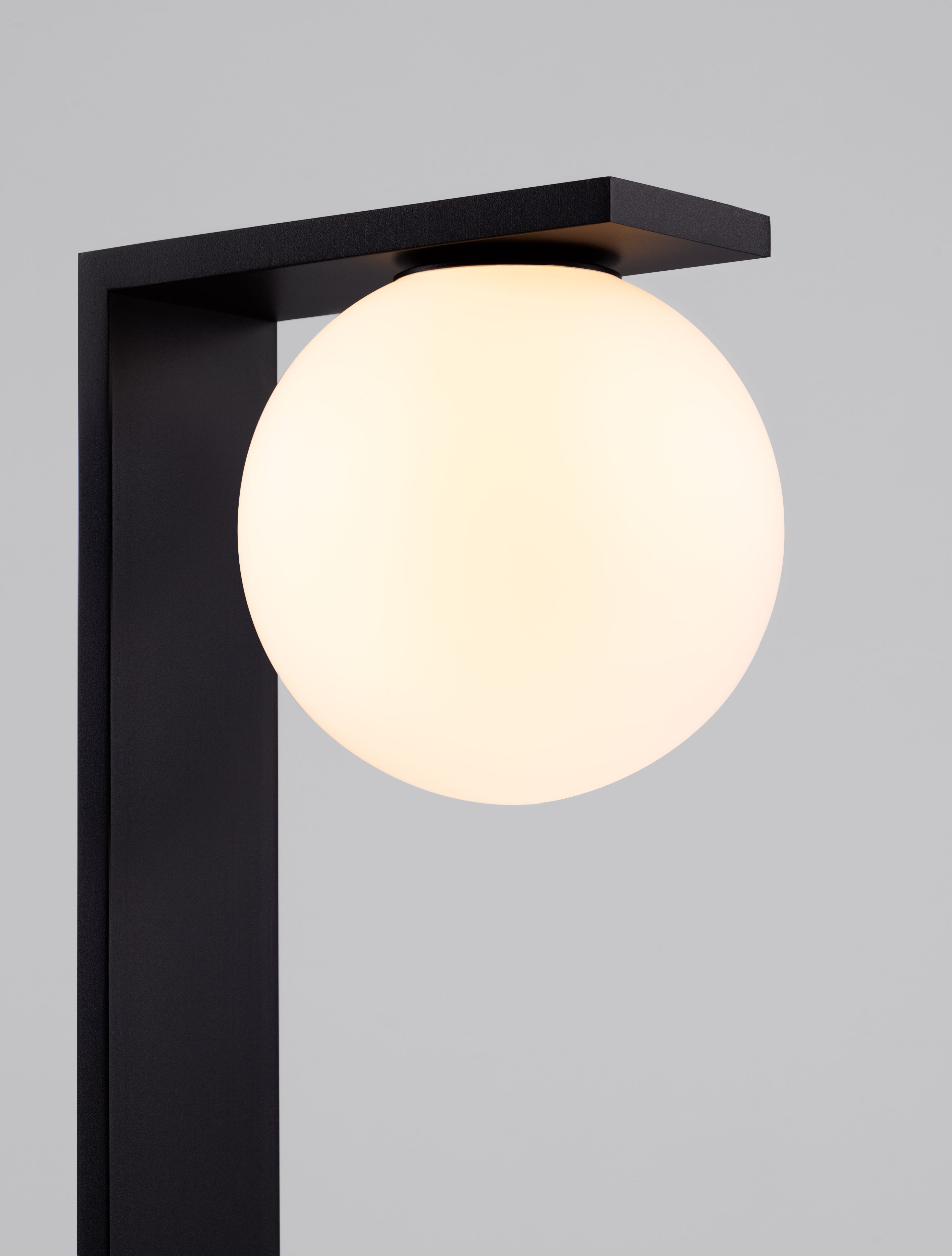 алуминий в матово черен цвят, стъкло в цвят бял опал