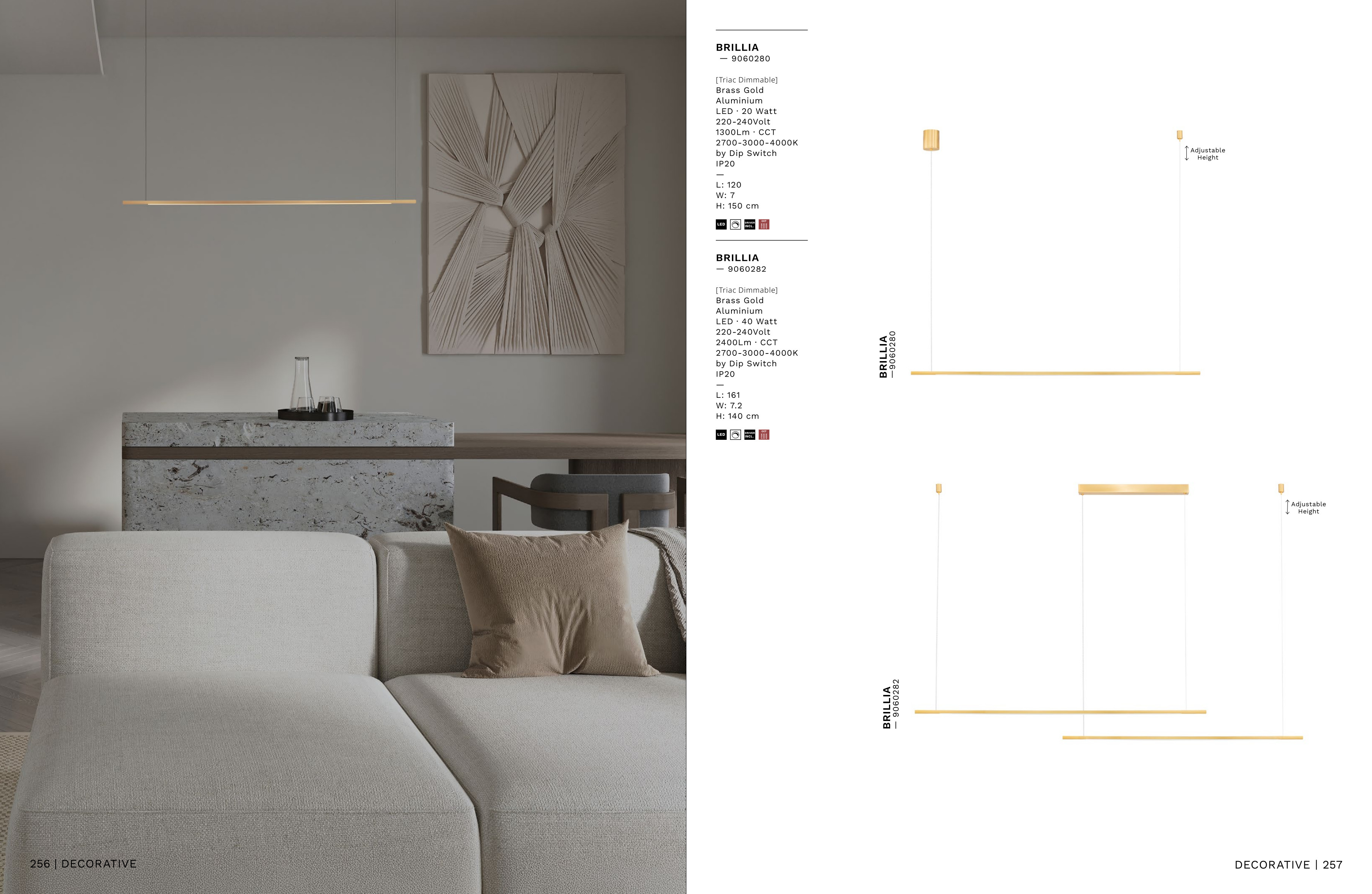 Осветителното тяло 9060280 ще осигури комфорт и естетика във всяко помещение, в което се постави. Цялостната визия и дизайн на лампата и вложените в изработката й материали, като алуминий в цвят златен месинг, CCT 2700-3000-4000K, ще допринесат за един неповторим стил. Благодарение на дългогодишния опит, качествените материали и строгия контрол на качеството на изработка на производителя Nova-Luce (Гърция), 9060280 е на високо европейско ниво.