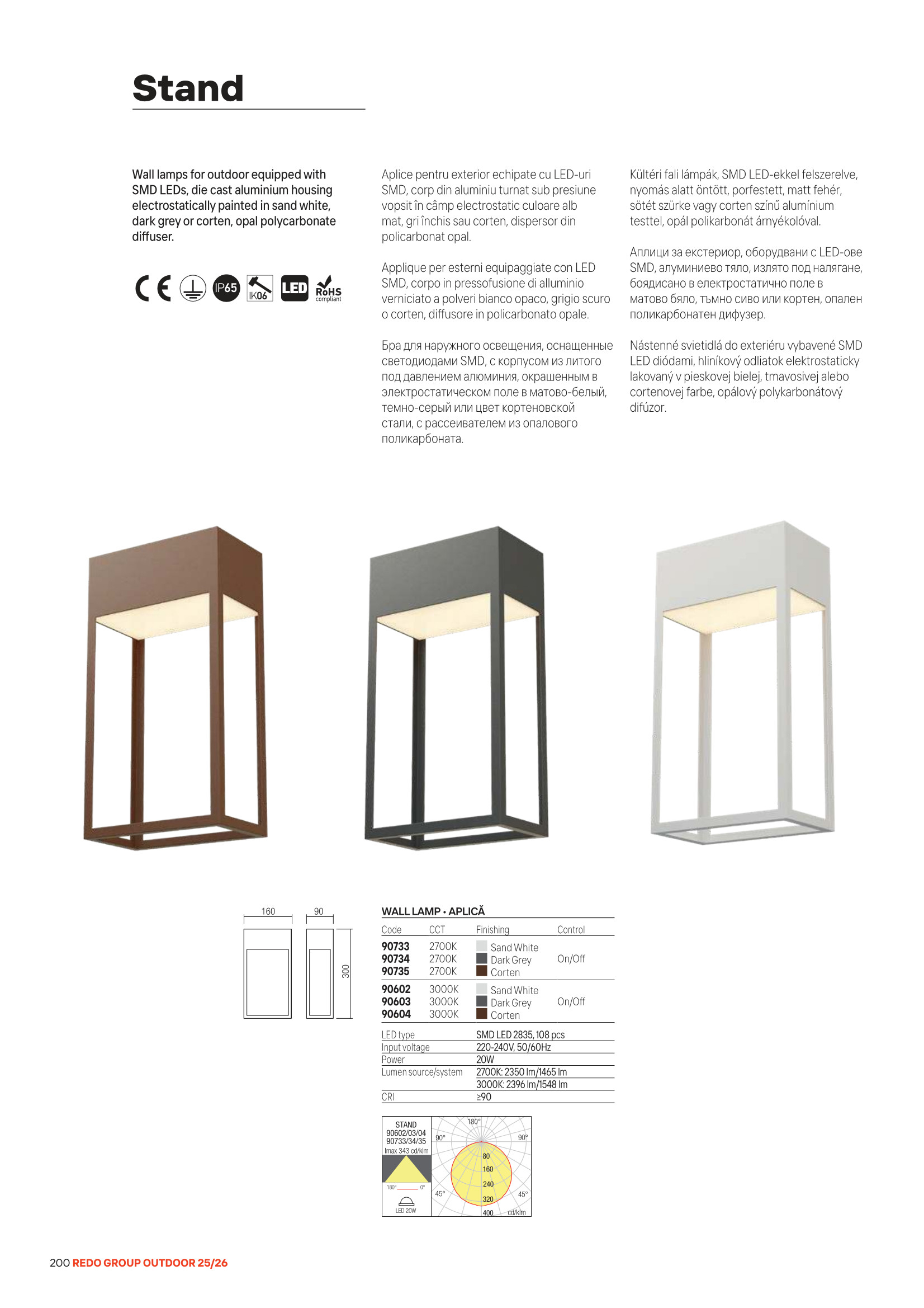 Лед аплик, външна лампа 90604 ще осигури комфорт и естетика във всяко помещение, в което се постави. Цялостната визия и дизайн на led лампата и вложените в изработката й материали, като алуминий, излят под налягане, с нанесено в електростатично поле покритие в цвят ръжда, дифузер от поликарбонат в опалово бяло, ще допринесат за един неповторим стил. Благодарение на дългогодишния опит в производството на лед осветление, качествените материали и строгия контрол на качеството на изработка на дизайнерската линия Redo Outdoor на производителя Redo (Румъния), 90604 е на високо европейско ниво.