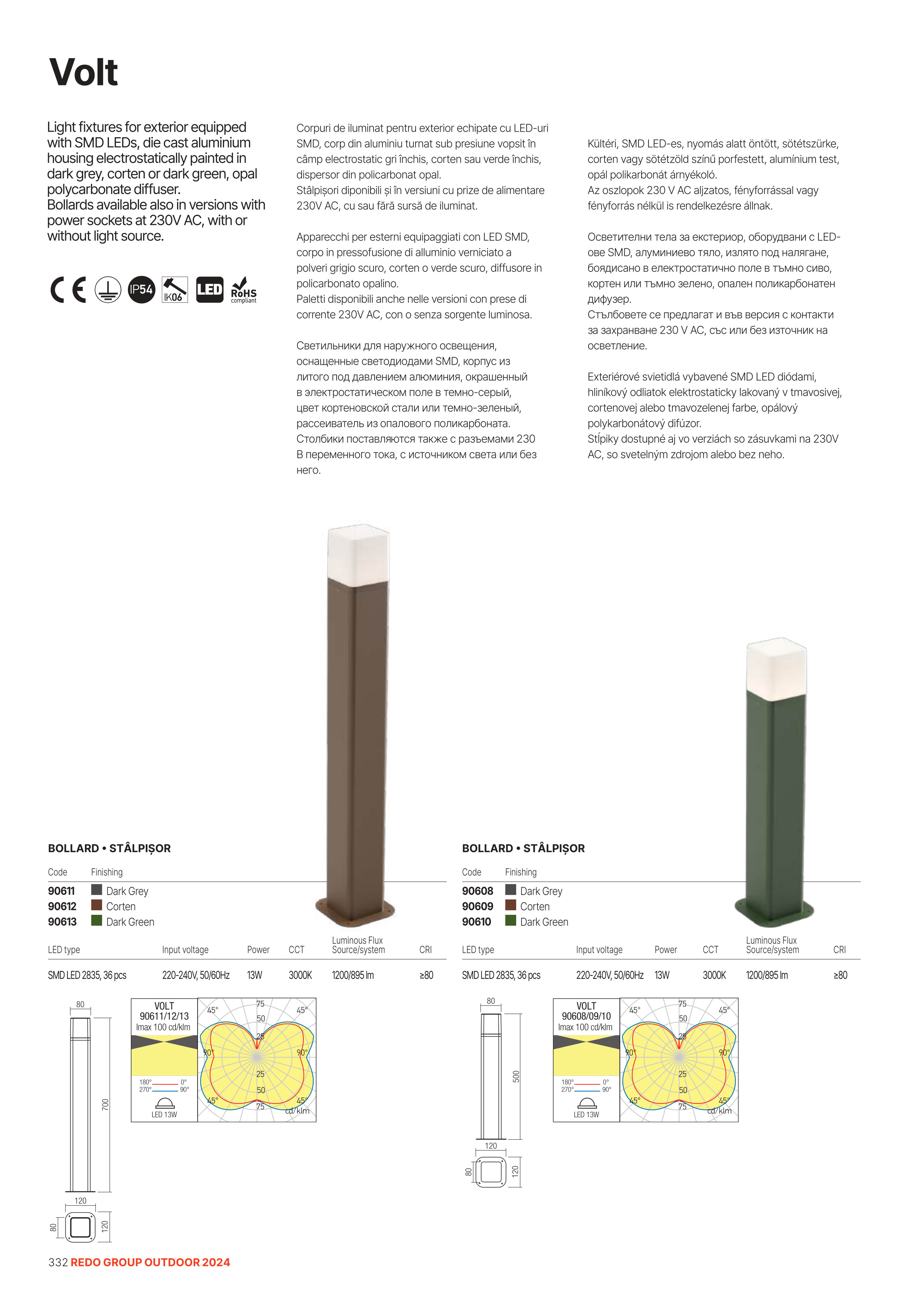Лед външна лампа 90608 ще осигури комфорт и естетика във всяко помещение, в което се постави. Цялостната визия и дизайн на led лампата и вложените в изработката й материали, като алуминий, излят под налягане, с нанесено в електростатично поле покритие в тъмно сиво, дифузер от поликарбонат в опалово бяло, ще допринесат за един неповторим стил. Благодарение на дългогодишния опит в производството на лед осветление, качествените материали и строгия контрол на качеството на изработка на дизайнерската линия Redo Outdoor на производителя Redo (Румъния), 90608 е на високо европейско ниво.