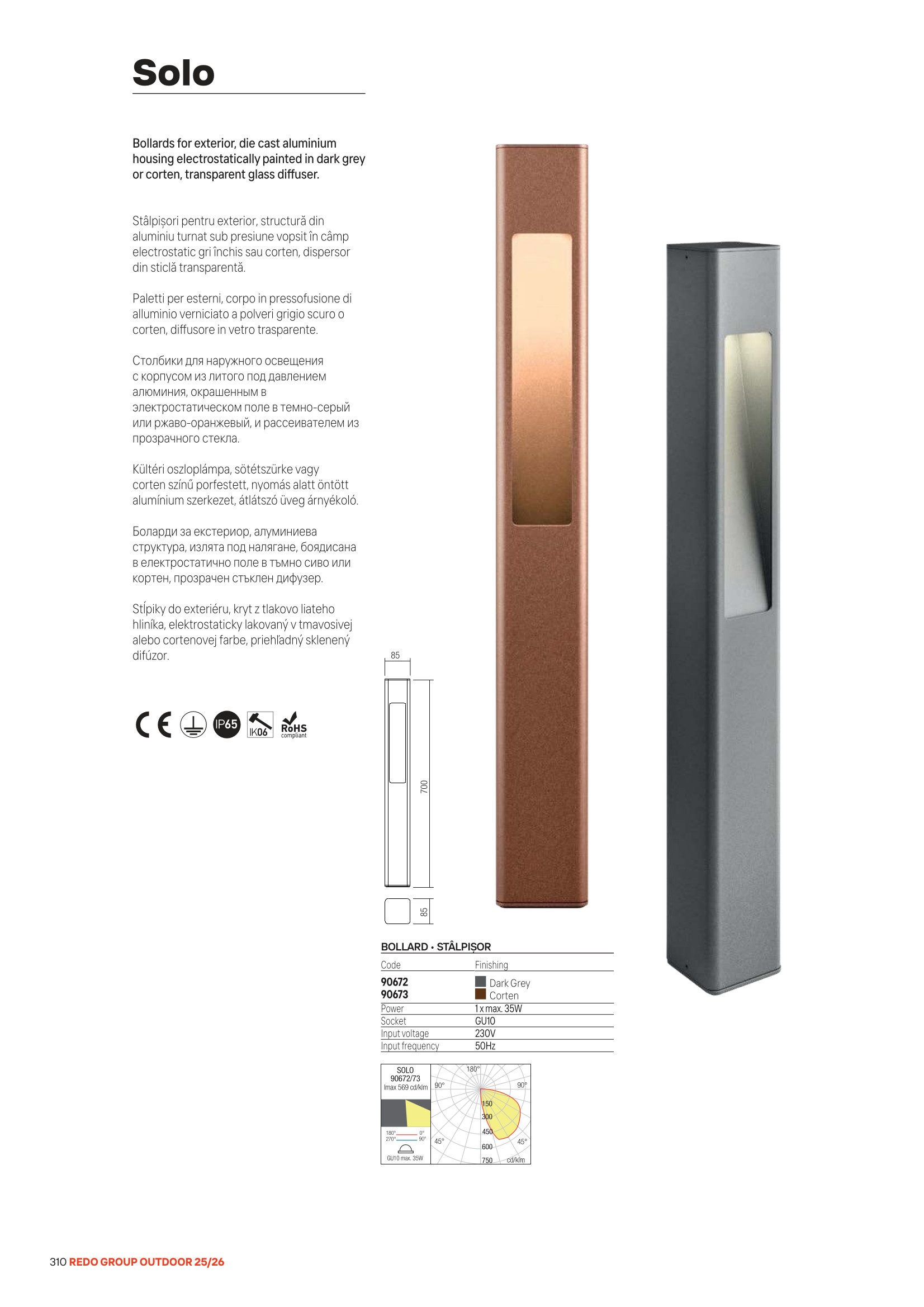 Лед външна лампа 90673 ще осигури комфорт и естетика във всяко помещение, в което се постави. Цялостната визия и дизайн на led лампата и вложените в изработката й материали, като алуминиева структура, излята под налягане, с нанесено в електростатично поле покритие в цвят ръжда, прозрачен стъклен дифузер, ще допринесат за един неповторим стил. Благодарение на дългогодишния опит в производството на лед осветление, качествените материали и строгия контрол на качеството на изработка на дизайнерската линия Redo Outdoor на производителя Redo (Румъния), 90673 е на високо европейско ниво.