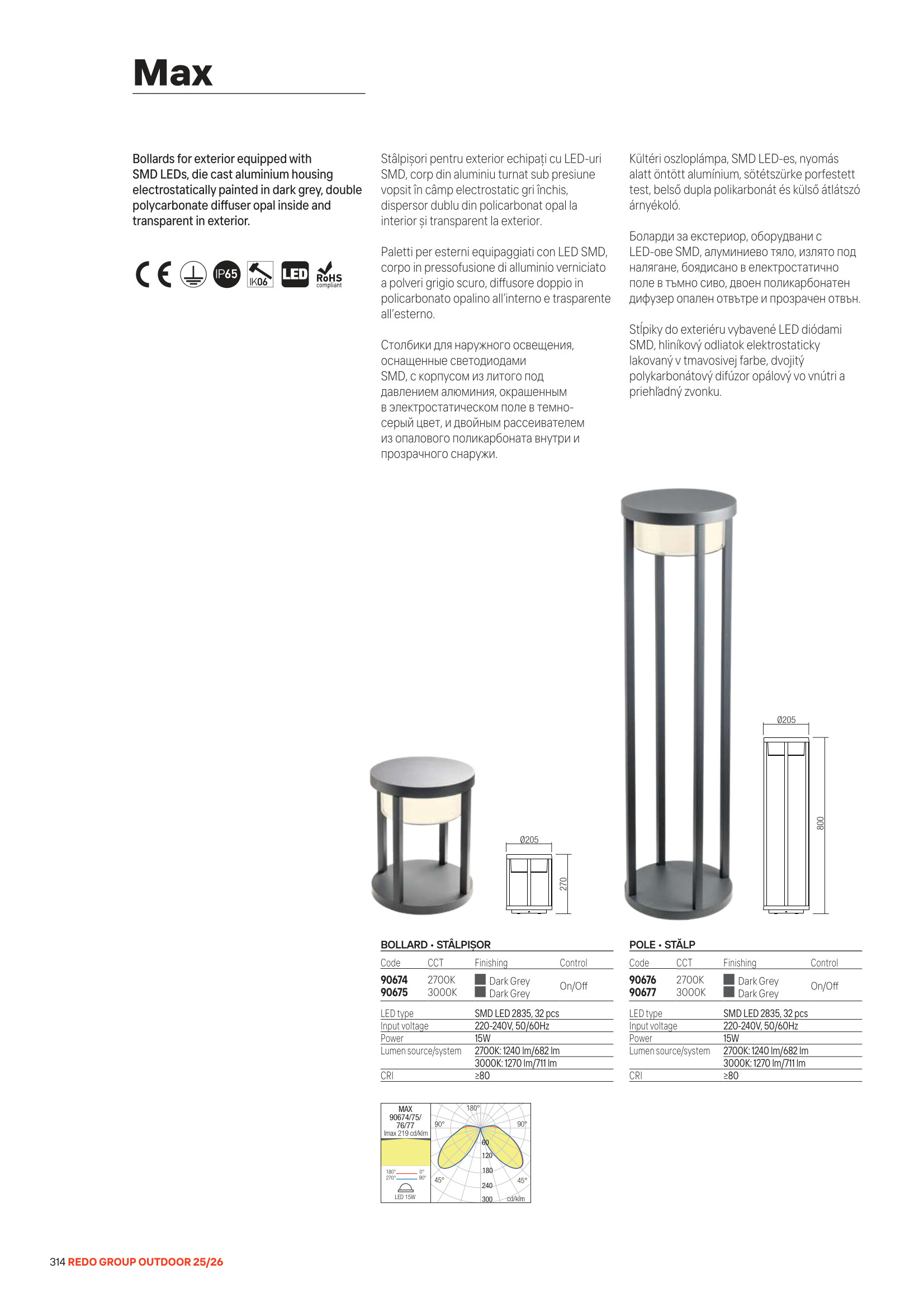 Лед външна лампа 90677 ще осигури комфорт и естетика във всяко помещение, в което се постави. Цялостната визия и дизайн на led лампата и вложените в изработката й материали, като излят под налягане алуминий в тъмно сиво, двоен поликарбонатен дифузер в цвят опал отвътре и прозрачен отвън, ще допринесат за един неповторим стил. Благодарение на дългогодишния опит в производството на лед осветление, качествените материали и строгия контрол на качеството на изработка на дизайнерската линия Redo Outdoor на производителя Redo (Румъния), 90677 е на високо европейско ниво.