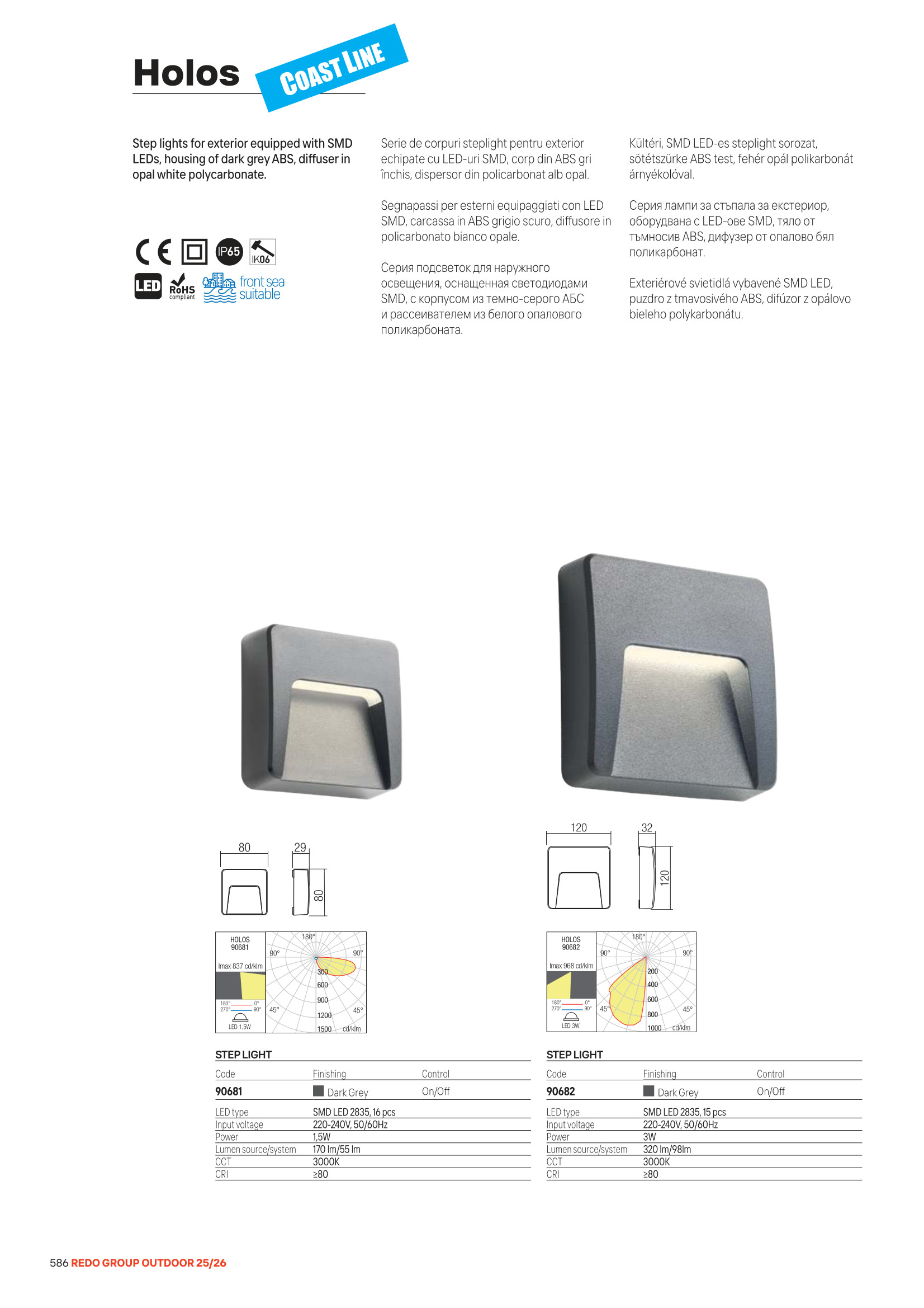 Лед аплик, външна лампа 90681 ще осигури комфорт и естетика във всяко помещение, в което се постави. Цялостната визия и дизайн на led лампата и вложените в изработката й материали, като тъмносив ABS, дифузер от опалово бял поликарбонат, възможност за монтаж по крайбрежието на морето, ще допринесат за един неповторим стил. Благодарение на дългогодишния опит в производството на лед осветление, качествените материали и строгия контрол на качеството на изработка на дизайнерската линия Redo Outdoor на производителя Redo (Румъния), 90681 е на високо европейско ниво.