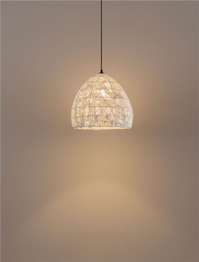 Стилът и естетиката на обстановката ще се обогатят благодарение, както на цялостната визия и дизайн на осветителното тяло, така и на вложените в изработката му, качествени материали, като: артистично оформена бяла хартиена пулпа, кабел с черна текстилна оплетка.