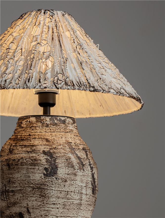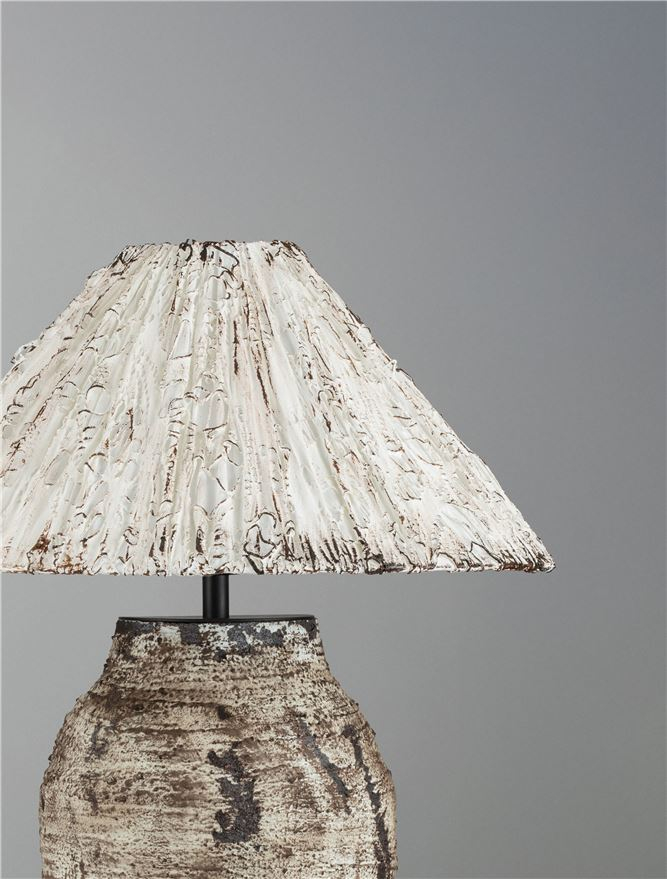 ръчно иработен абажур с естествени материали, бежово-сива керамика