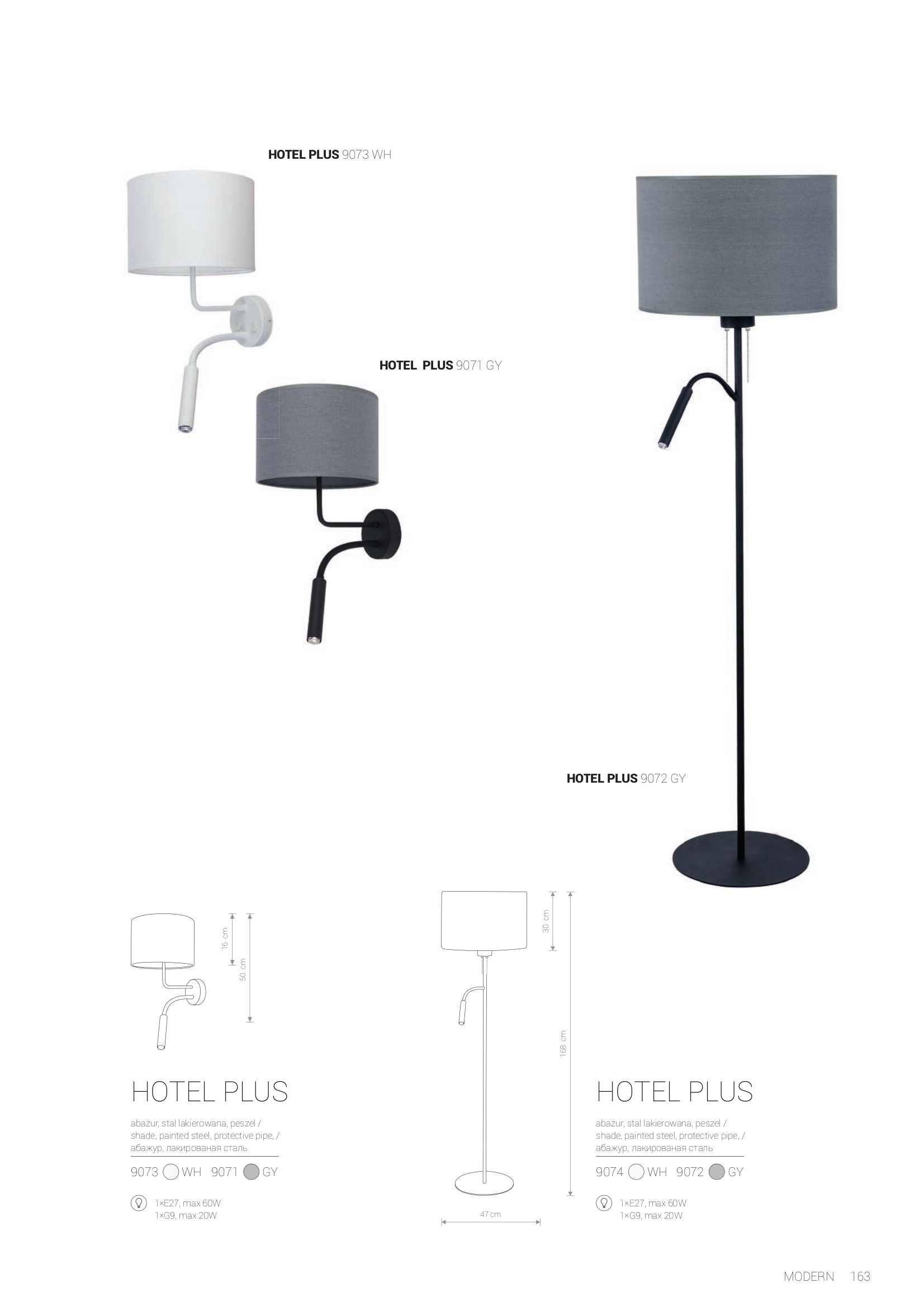 Представяме Ви осветителното тяло 9072 HOTEL PLUS POD?OGOWA, което представлява лампион / правостояща лампа в съвременен стил. Тази лампа е част от категорията и е много подходяща за различни помещения и пространства във Вашия дом или офис, като например всекидневна / хол, спалня, кухня, трапезария, офис.