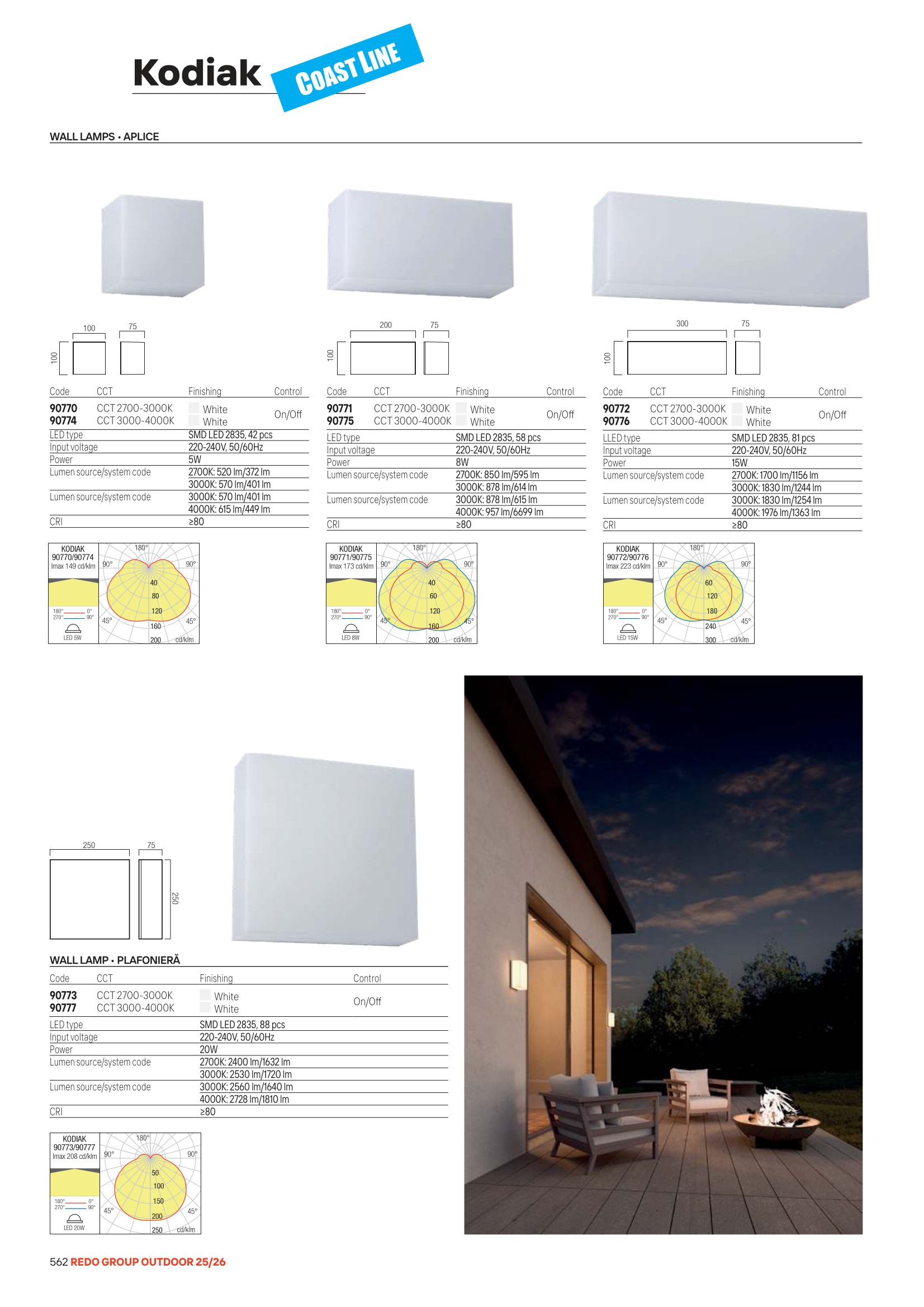 Лед плафон, аплик, външна лампа 90776 ще осигури комфорт и естетика във всяко помещение, в което се постави. Цялостната визия и дизайн на led лампата и вложените в изработката й материали, като опалово бял поликарбонат, възможност за идбор на цветна темепература CCT 3000-4000K, възможност за монтаж по крайбрежието на морето, ще допринесат за един неповторим стил. Благодарение на дългогодишния опит в производството на лед осветление, качествените материали и строгия контрол на качеството на изработка на дизайнерската линия Redo Outdoor на производителя Redo (Румъния), 90776 е на високо европейско ниво.