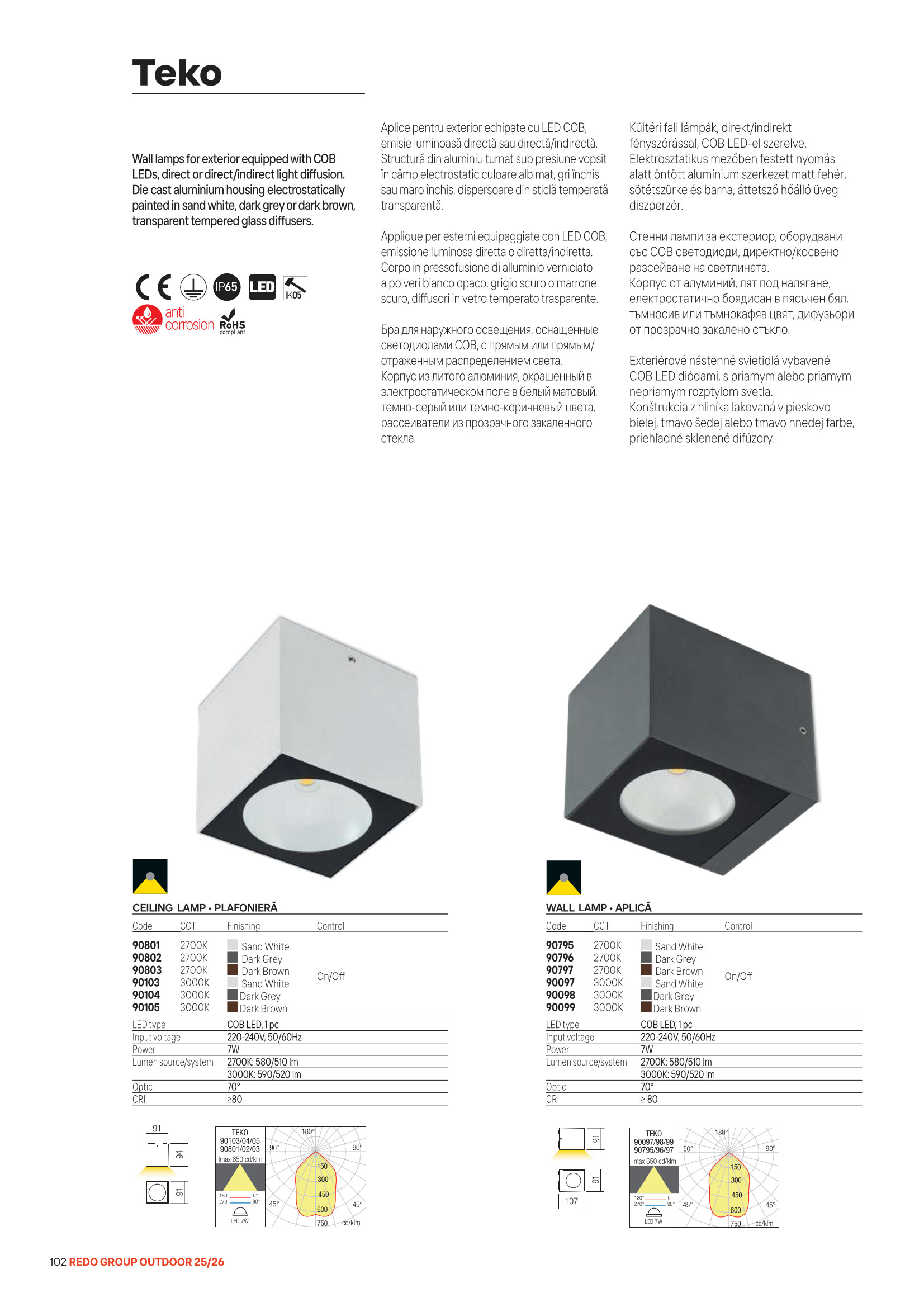 Лед аплик, външна лампа 90795 ще осигури комфорт и естетика във всяко помещение, в което се постави. Цялостната визия и дизайн на led лампата и вложените в изработката й материали, като алуминий отлят под налягане с електростатично нанесено покритие в пясъчно бяло, дифузьор от прозрачно закалено стъкло, ще допринесат за един неповторим стил. Благодарение на дългогодишния опит в производството на лед осветление, качествените материали и строгия контрол на качеството на изработка на дизайнерската линия Redo Outdoor на производителя Redo (Румъния), 90795 е на високо европейско ниво.