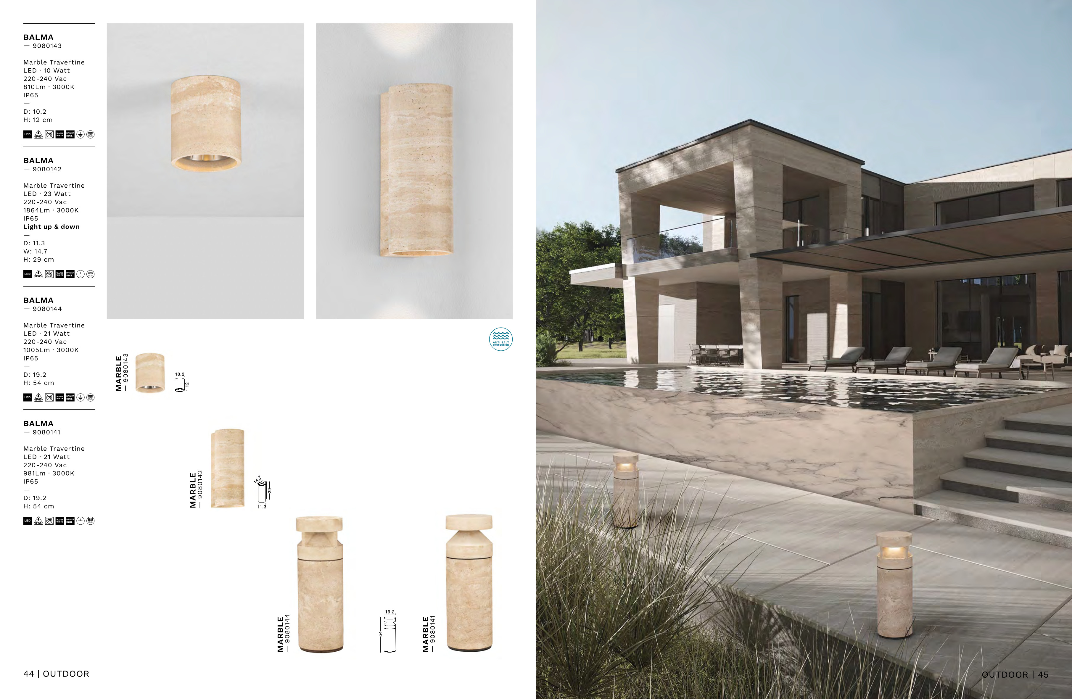 Лед външна лампа, луничка / луна 9080143 ще осигури комфорт и естетика във всяко помещение, в което се постави. Цялостната визия и дизайн на led лампата и вложените в изработката й материали, като мраморен травертин, ще допринесат за един неповторим стил. Благодарение на дългогодишния опит в производството на лед осветление, качествените материали и строгия контрол на качеството на изработка на производителя Nova-Luce (Гърция), 9080143 е на високо европейско ниво.