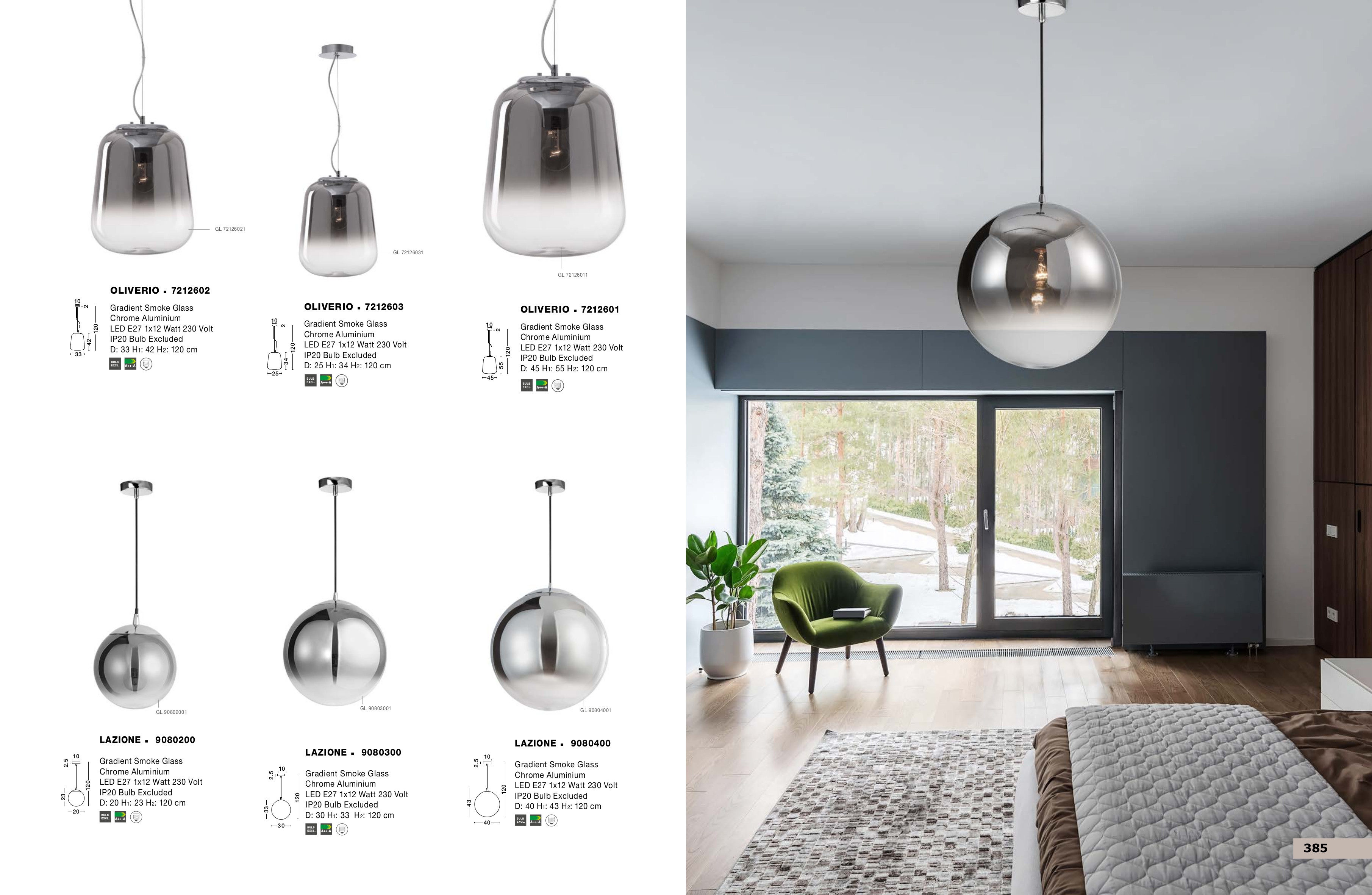 Стилът и естетиката на обстановката ще се обогатят благодарение, както на цялостната визия и дизайн на осветителното тяло, така и на вложените в изработката му, качествени материали, като: градиентно опушено стъкло, хромиран алуминий.
