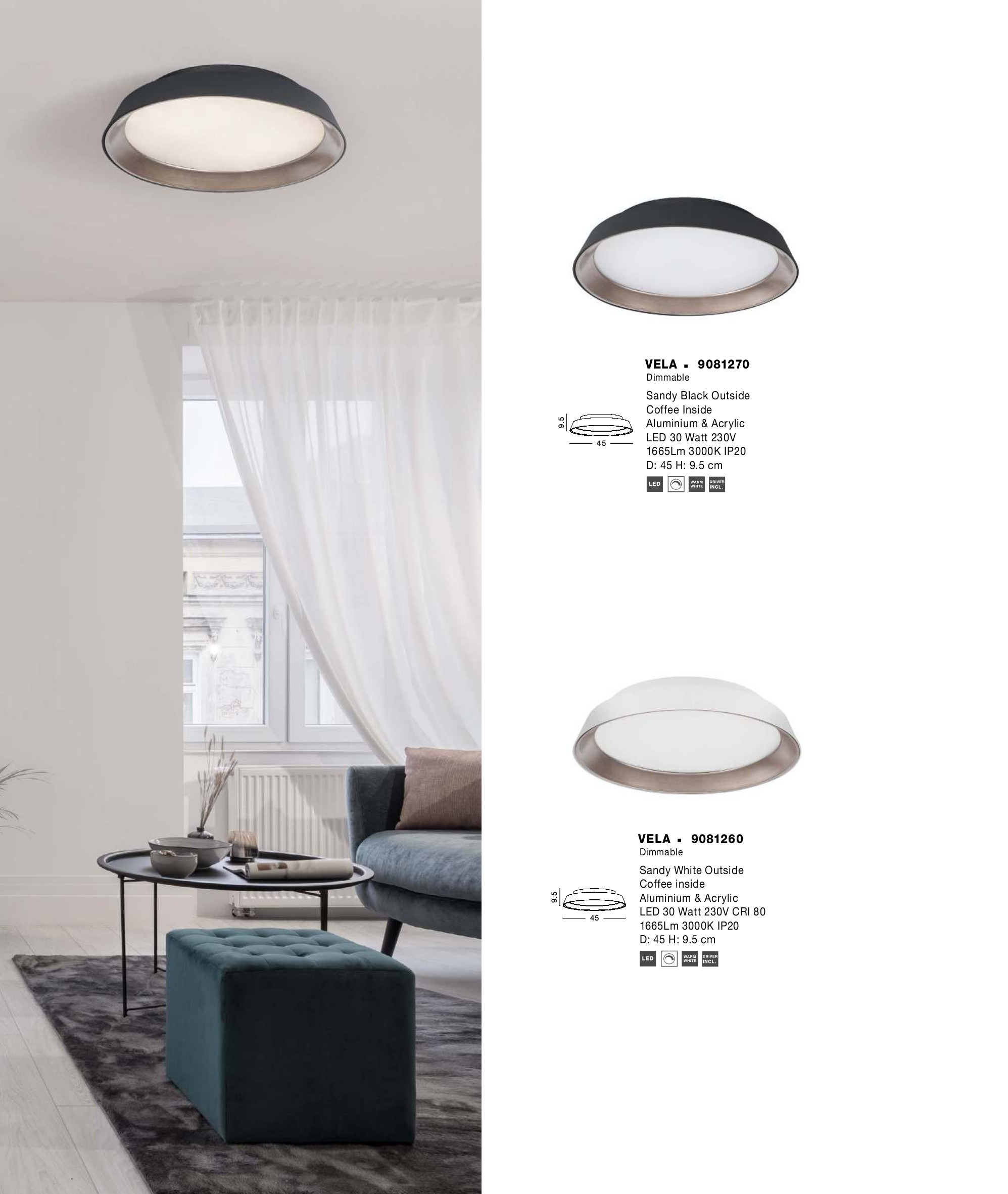 Осветителното тяло 9081260 ще осигури комфорт и естетика във всяко помещение, в което се постави. Цялостната визия и дизайн на лампата и вложените в изработката й материали, като алуминий в пясъчно бяло отвън и в цвят на кафе отвътре, полимер в бяло, ще допринесат за един неповторим стил. Благодарение на дългогодишния опит, качествените материали и строгия контрол на качеството на изработка на производителя Nova-Luce (Гърция), 9081260 е на високо европейско ниво.