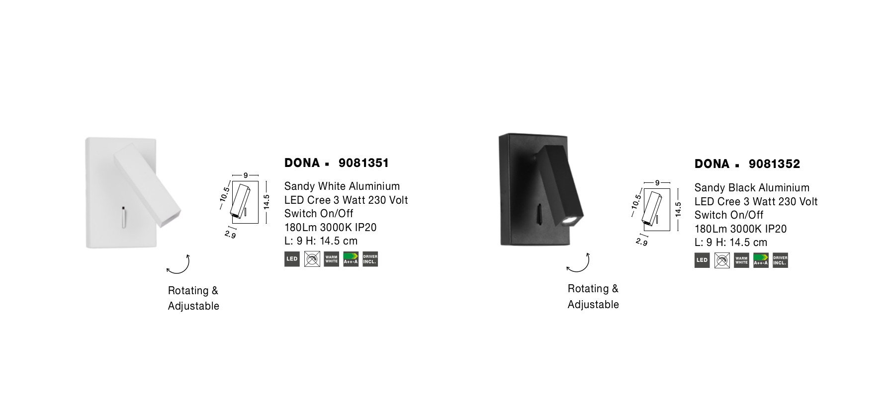 Осветителното тяло 9081352 ще осигури комфорт и естетика във всяко помещение, в което се постави. Цялостната визия и дизайн на лампата и вложените в изработката й материали, като алуминий в цвят черен мат, ключ ON/OFF, ще допринесат за един неповторим стил. Благодарение на дългогодишния опит, качествените материали и строгия контрол на качеството на изработка на производителя Nova-Luce (Гърция), 9081352 е на високо европейско ниво.