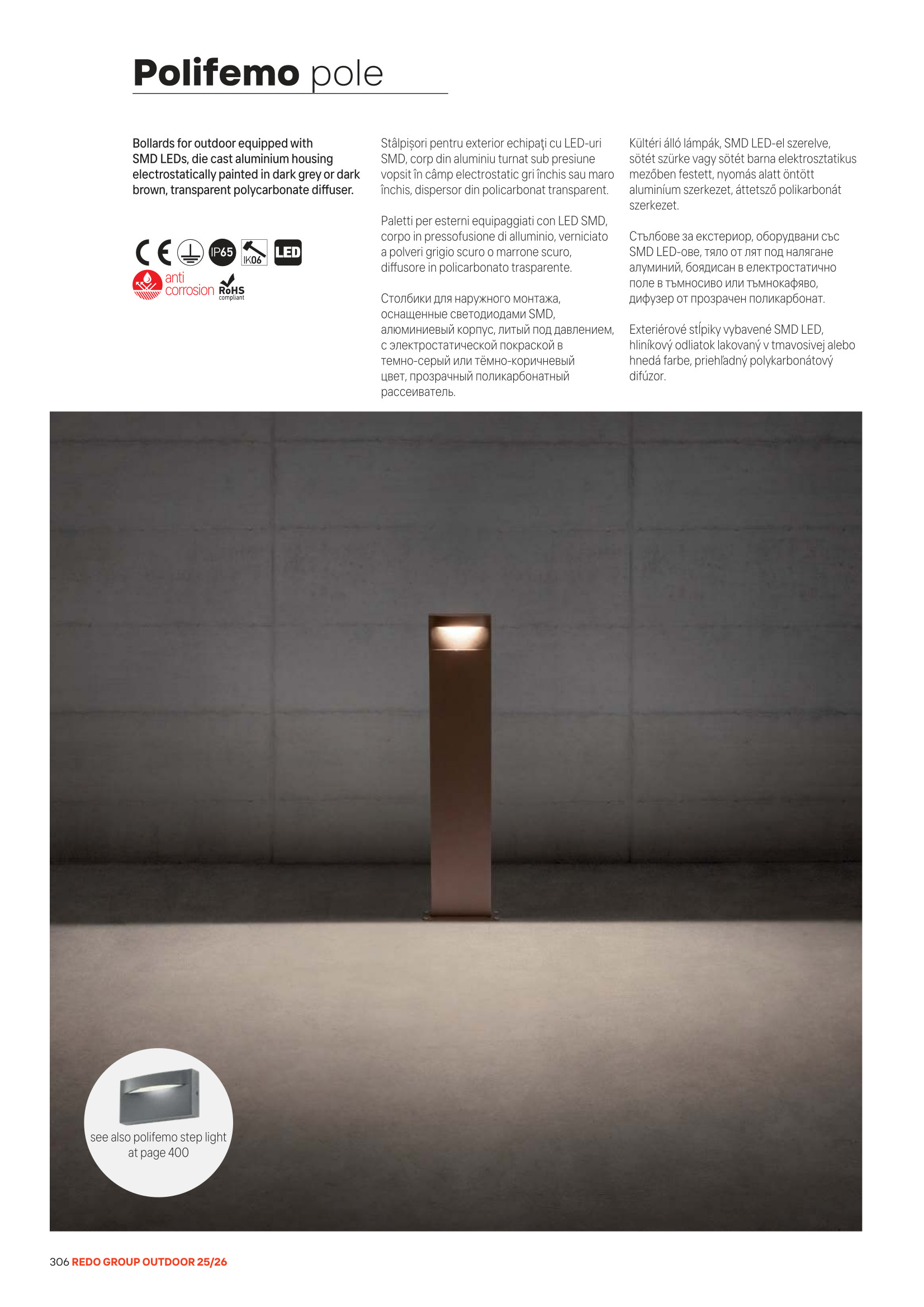 Лед външна лампа 90834 ще осигури комфорт и естетика във всяко помещение, в което се постави. Цялостната визия и дизайн на led лампата и вложените в изработката й материали, като лят под налягане алуминий в тъмно сив цвят, дифузер от прозрачен поликарбонат, ще допринесат за един неповторим стил. Благодарение на дългогодишния опит в производството на лед осветление, качествените материали и строгия контрол на качеството на изработка на дизайнерската линия Redo Outdoor на производителя Redo (Румъния), 90834 е на високо европейско ниво.