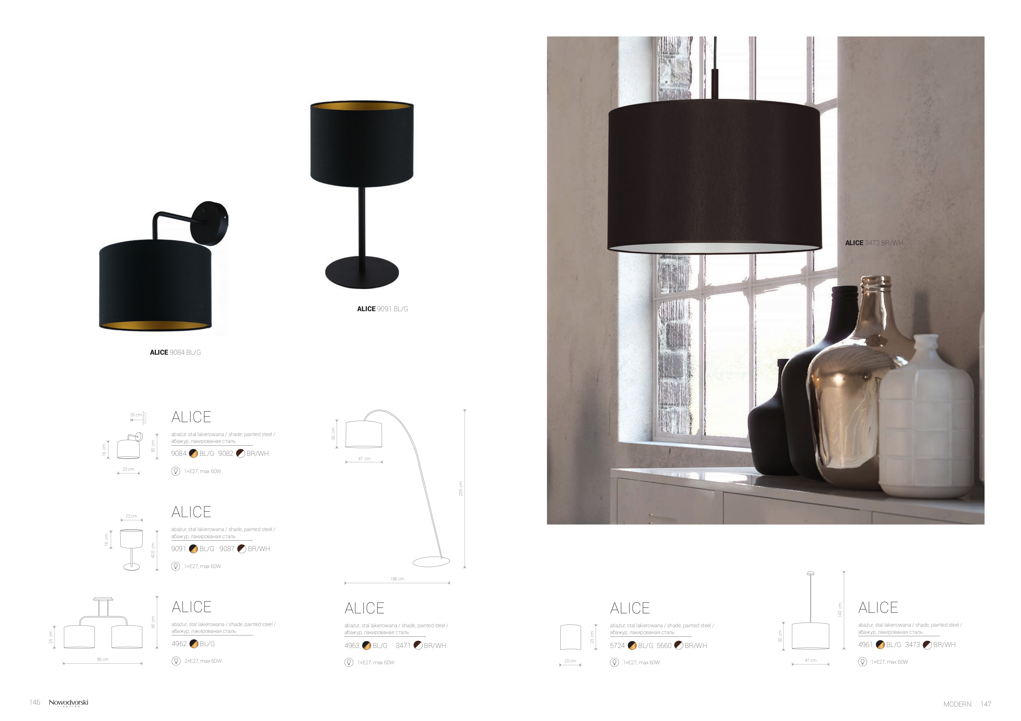 За стила и естетиката на обстановката допринасят, както цялостната визия и дизайн на осветителното тяло, така и вложените в изработката качествени материали, като: стомана в черен цвят, текстилен абажур, черен отвън и златист отвътре.