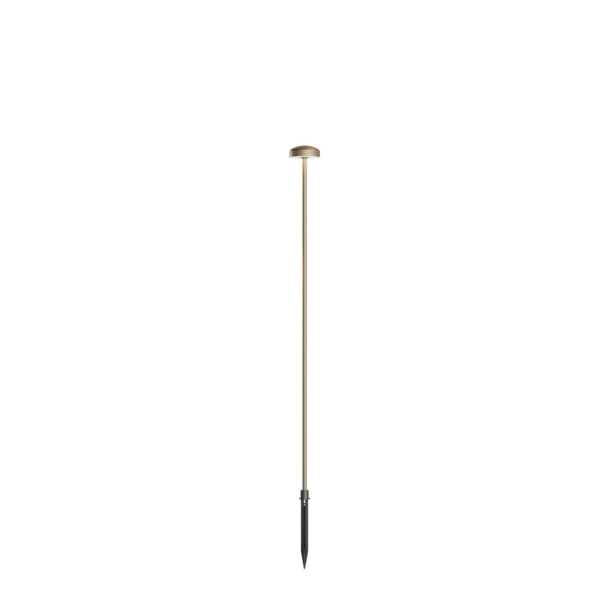 алуминий в цвят античен месинг, дифузер от сатениран поликарбонат, комплектът включва колче за монтаж, 2m захранващ кабел и IP68 конектор, драйверът 24VDC се поръчва отделно, димируемо осветително тяло
