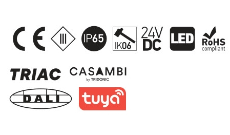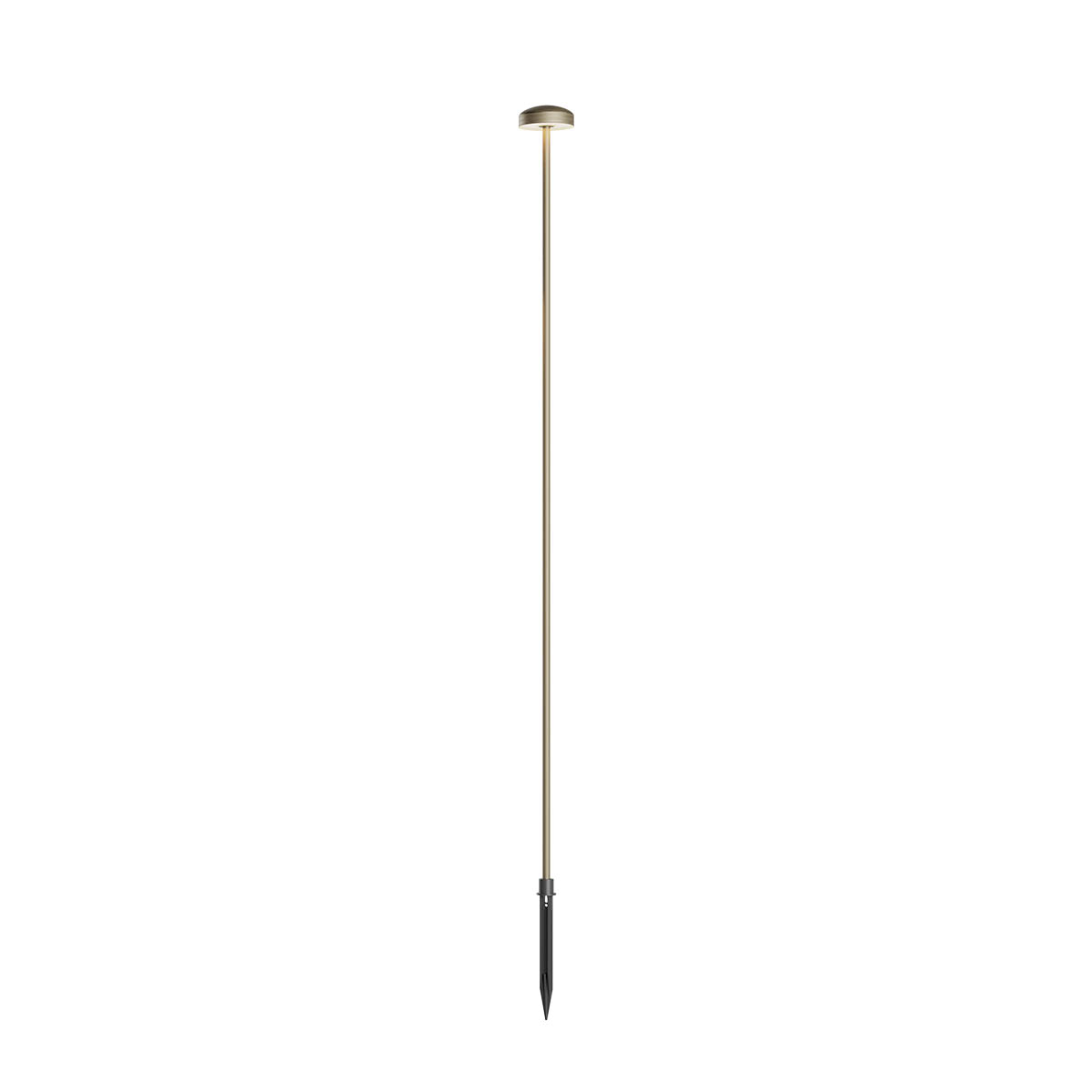 алуминий в цвят античен месинг, дифузер от сатениран поликарбонат, комплектът включва колче за монтаж, 2m захранващ кабел и IP68 конектор, драйверът 24VDC се поръчва отделно, димируемо осветително тяло