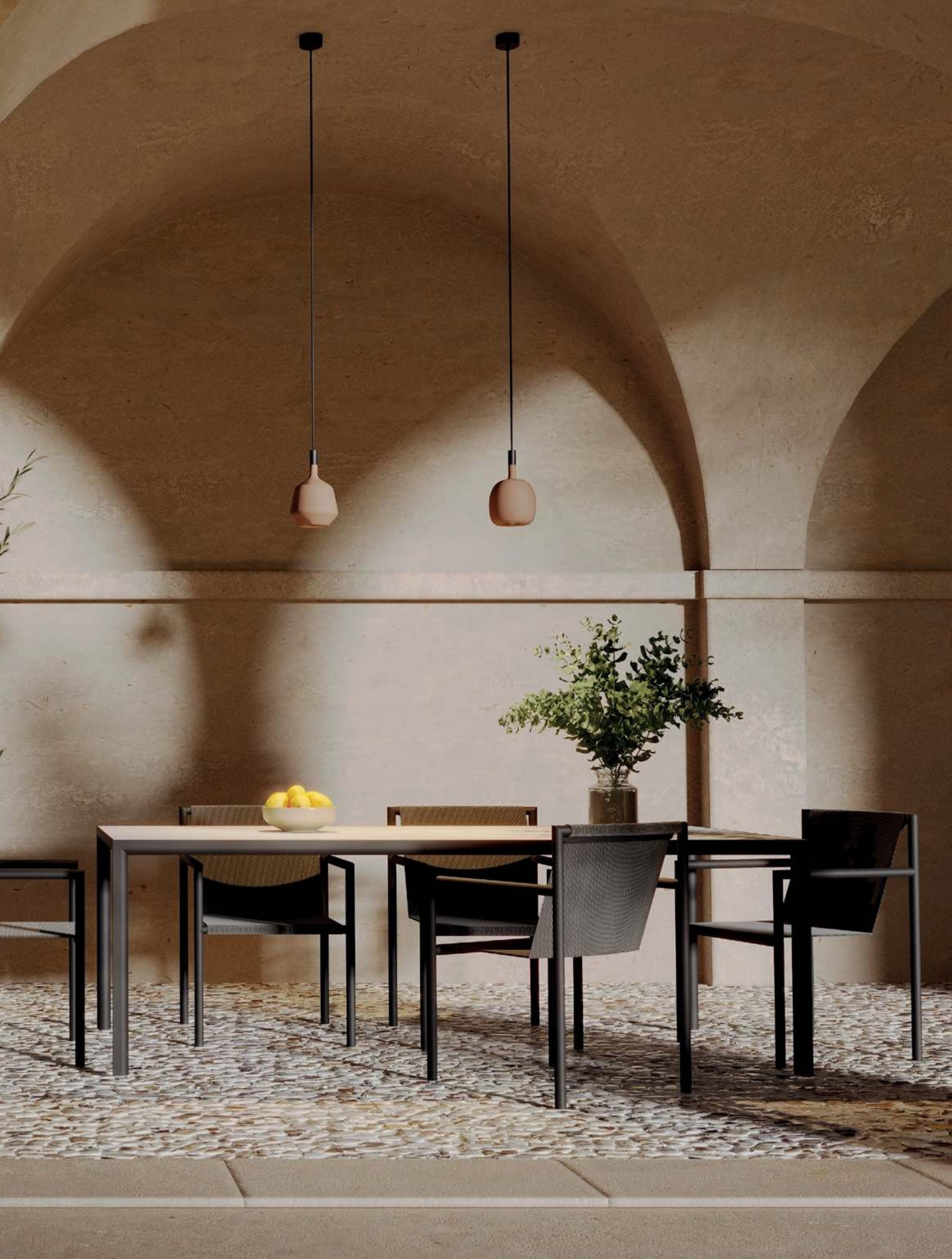 Стилът и естетиката на обстановката ще бъдат облагородени, както от цялостната визия и дизайн на осветителното тяло, така и от вложените в изработката на лампата висококачествени материали, като: бетон в цвят теракота, прозрачно стъкло.