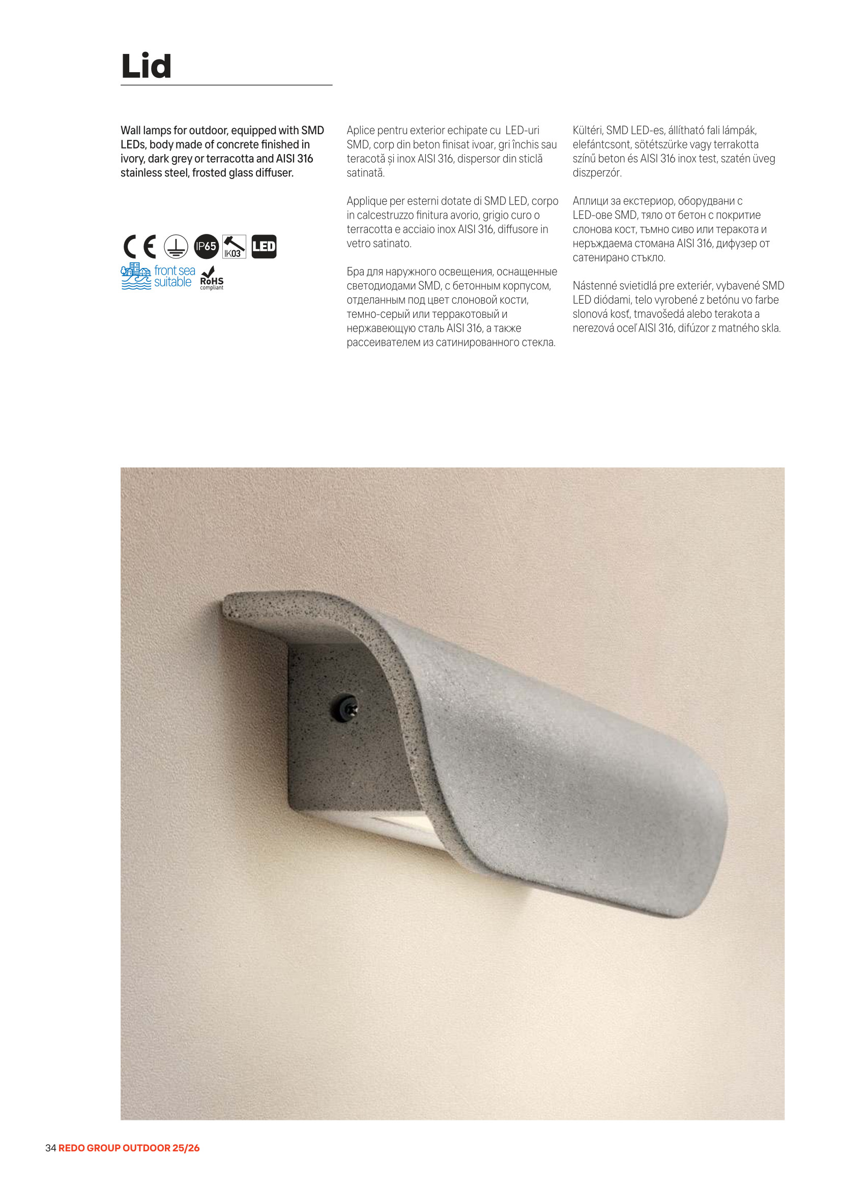 Лед аплик, външна лампа 90997 ще осигури комфорт и естетика във всяко помещение, в което се постави. Цялостната визия и дизайн на led лампата и вложените в изработката й материали, като бетон в цвят слонова кост, сатенирано стъкло, ще допринесат за един неповторим стил. Благодарение на дългогодишния опит в производството на лед осветление, качествените материали и строгия контрол на качеството на изработка на дизайнерската линия Redo Outdoor на производителя Redo (Румъния), 90997 е на високо европейско ниво.