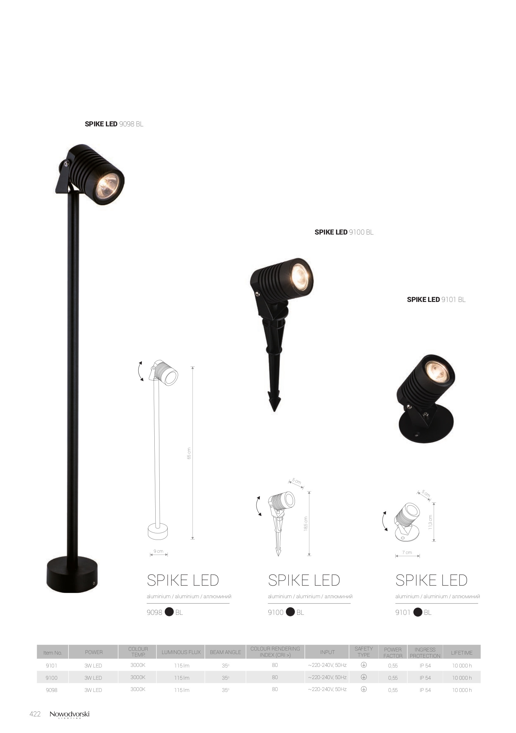 Осветителното тяло 9100 SPIKE LED M ще осигури комфорт и естетика във всяко помещение, в което се постави. Цялостната визия и дизайн на лампата и вложените в изработката й материали, като алуминий в черен цвят, ще допринесат за един неповторим стил. Благодарение на дългогодишния опит, качествените материали и строгия контрол на качеството на изработка на производителя Nowodvorski (Полша), 9100 SPIKE LED M е на високо европейско ниво.