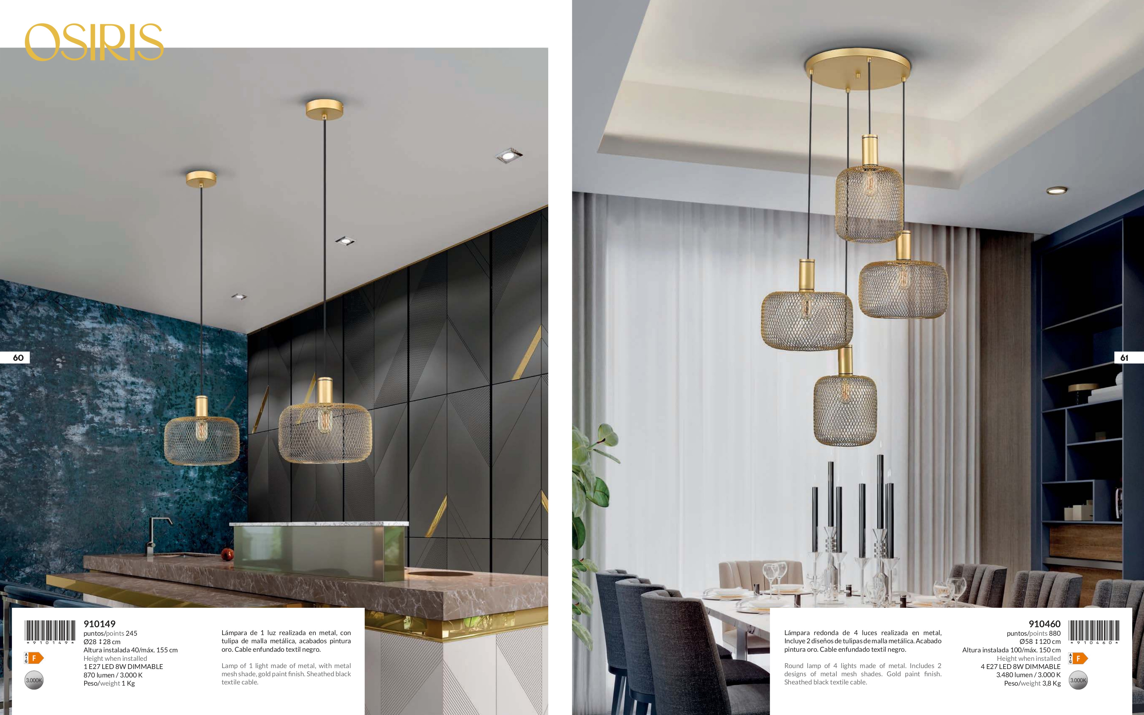 Осветителното тяло 910460 представлява полилей в съвременен стил. 910460 е от категорията осветителни тела и е подходящо за осветяване на различни помещения и пространства като: всекидневна / хол, спалня, кухня, трапезария, офис.