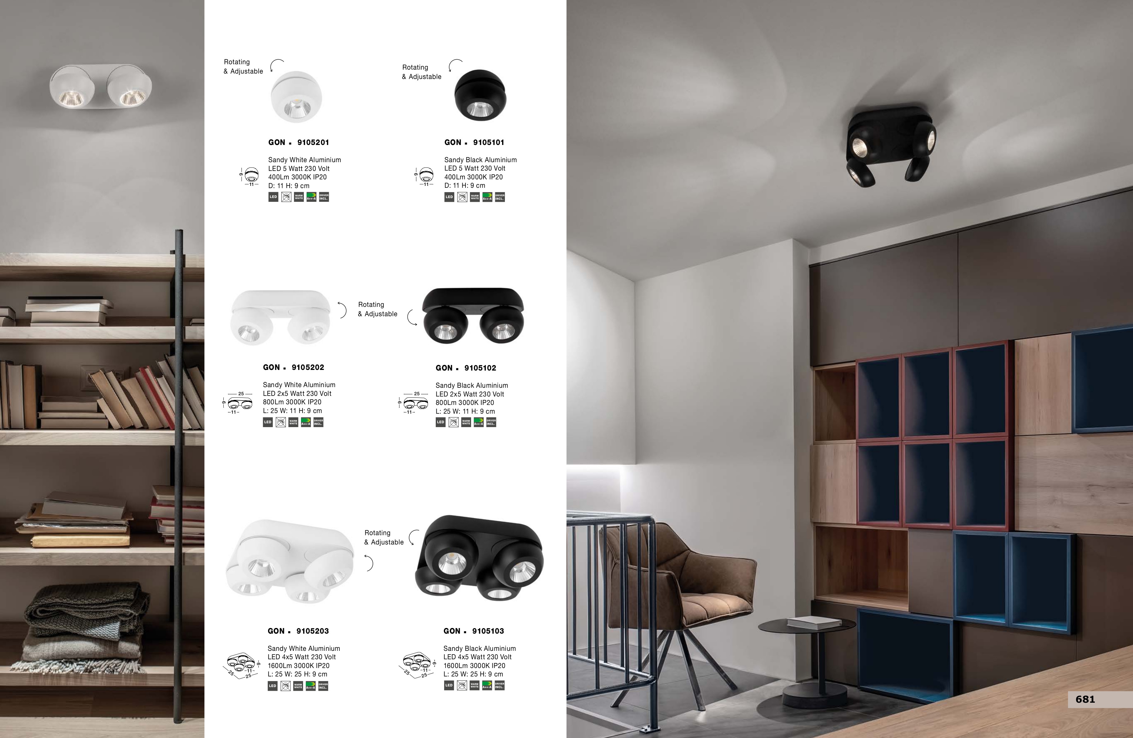 Осветителното тяло 9105102 представлява спот лампа в съвременен стил. 9105102 е от категорията осветителни тела и е подходящо за осветяване на различни помещения и пространства като: всекидневна / хол, спалня, кухня, трапезария, коридор, антре, стълбище, офис.