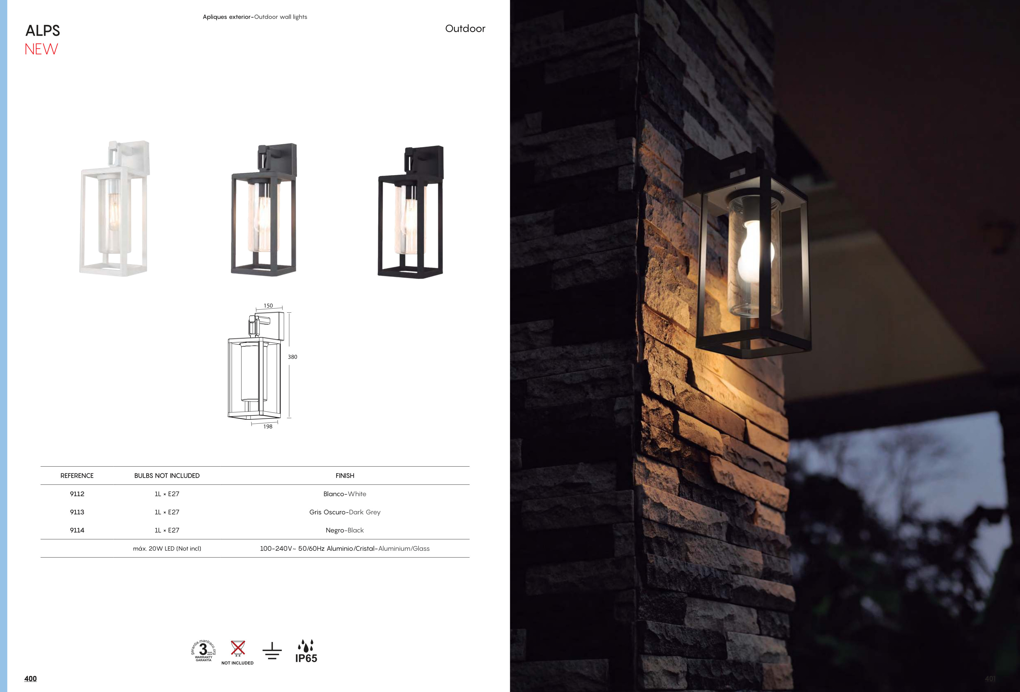 Верига магазини за осветителни тела ОРИОН представя осветителното тяло 9114 Black 1 x E27 (No Incl.) ALPS, което представлява аплик, външна лампа в съвременен стил. Лампата е част от категорията и е подходяща за осветление на различни помещения и външни пространства, като е особено подходяща, например за външно осветление, фасадно осветление.
