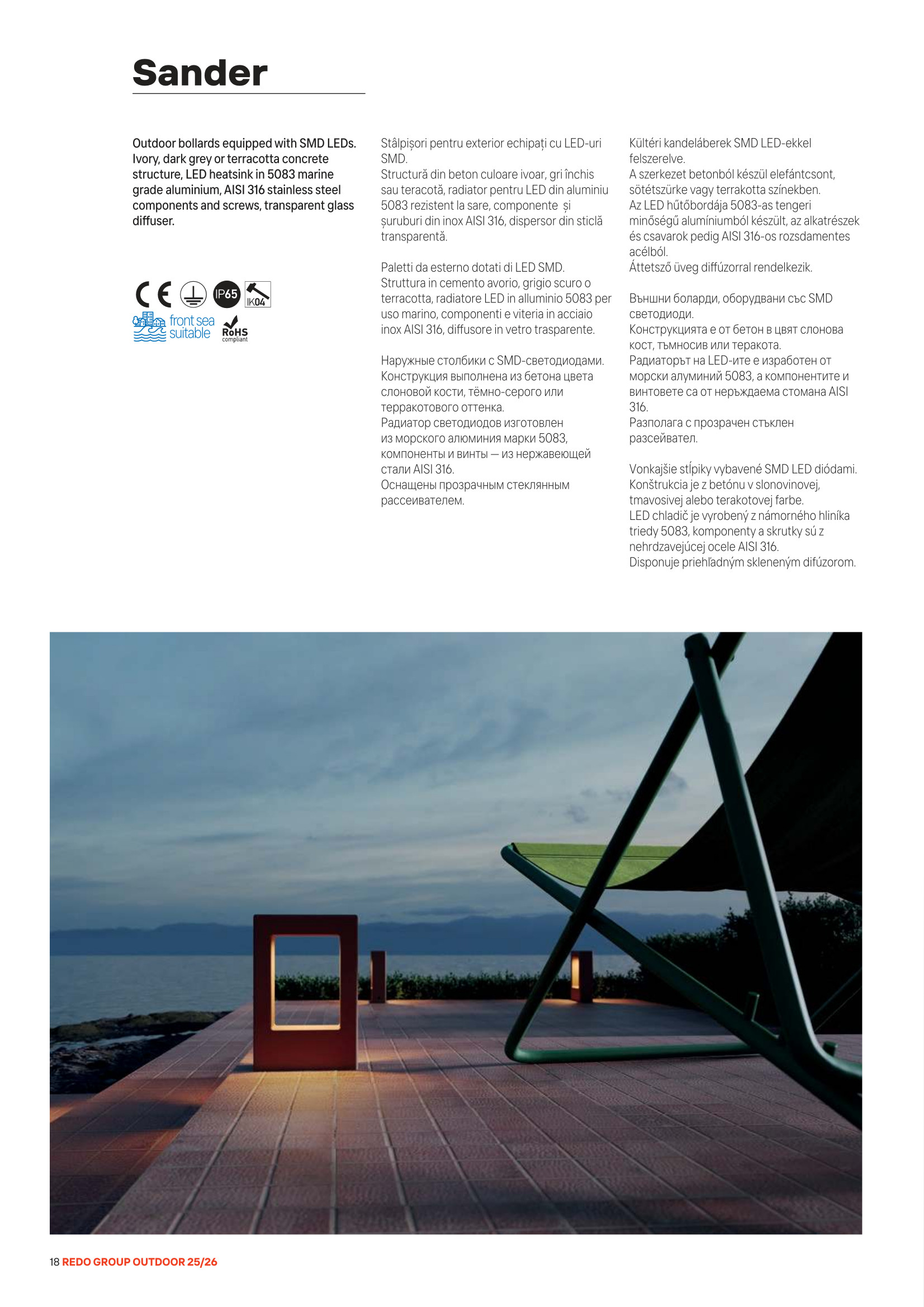 Лед външна лампа 91167 ще осигури комфорт и естетика във всяко помещение, в което се постави. Цялостната визия и дизайн на led лампата и вложените в изработката й материали, като бетон в цвят тъмно сиво, стъкло, ще допринесат за един неповторим стил. Благодарение на дългогодишния опит в производството на лед осветление, качествените материали и строгия контрол на качеството на изработка на дизайнерската линия Redo Outdoor на производителя Redo (Румъния), 91167 е на високо европейско ниво.