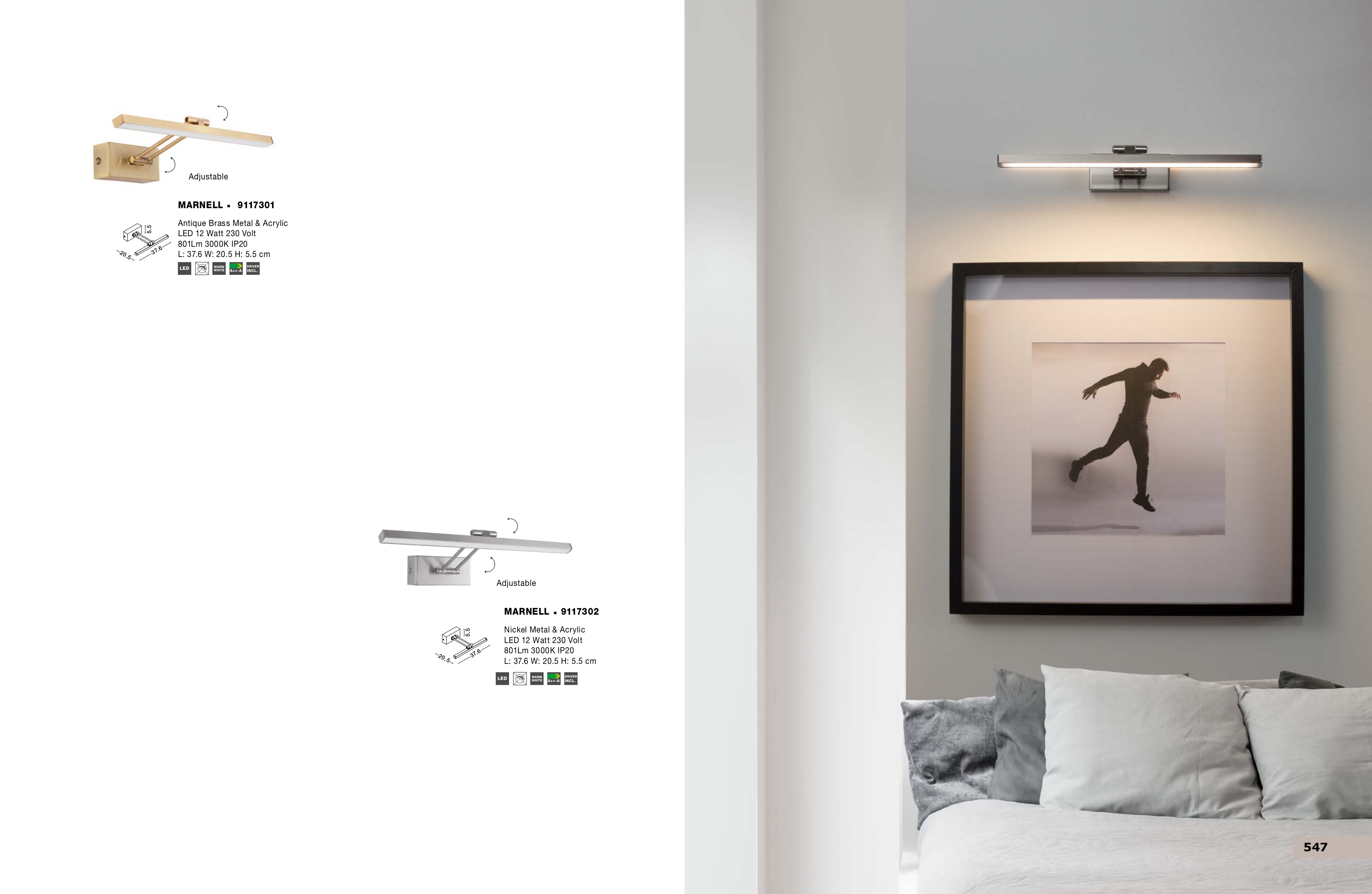 Осветителното тяло 9117301 представлява аплик в съвременен стил. 9117301 е от категорията осветителни тела и е подходящо за осветяване на различни помещения и пространства като: всекидневна / хол, спалня, кухня, трапезария, офис.