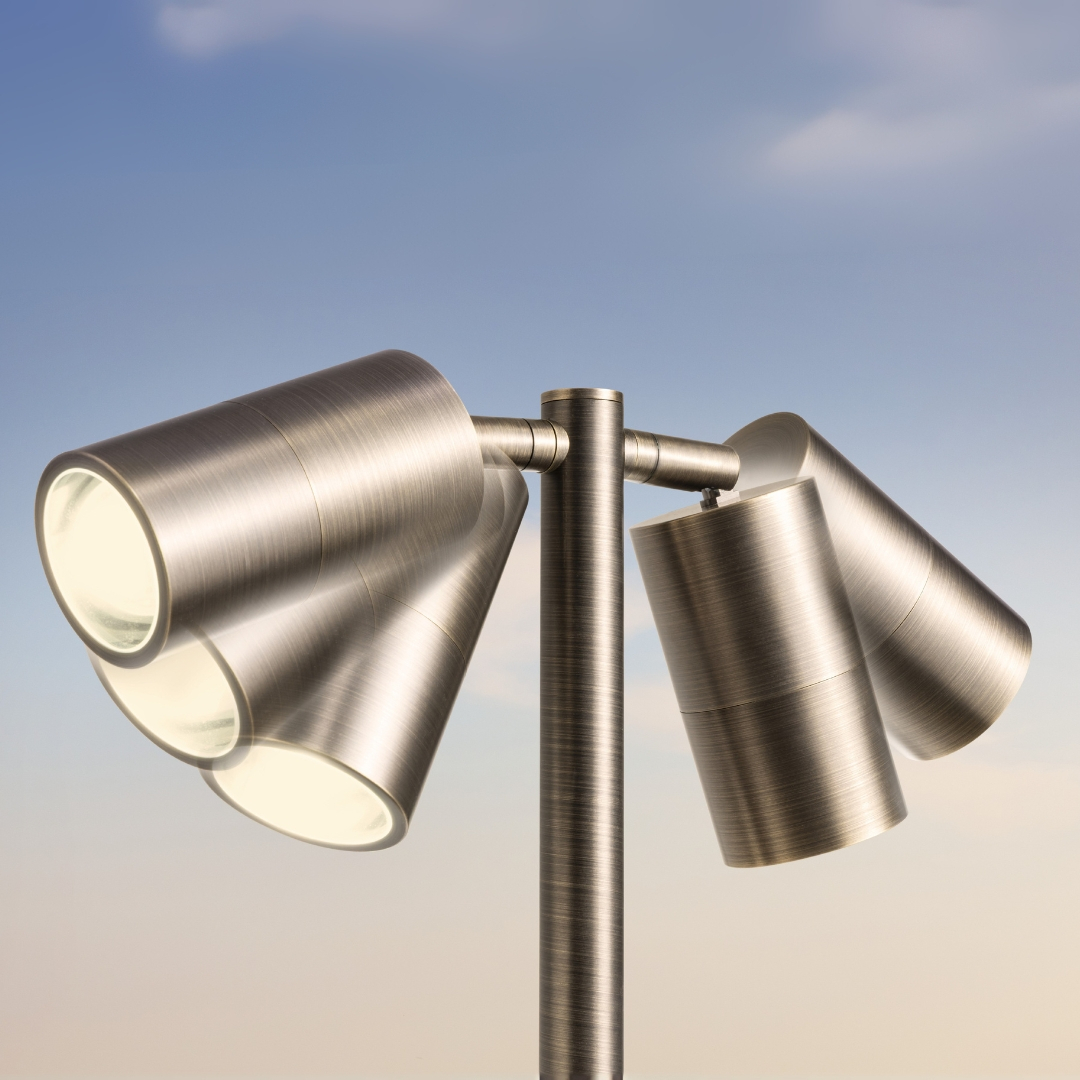 Стилът и естетиката на обстановката ще бъдат облагородени, както от цялостната визия и дизайн на осветителното тяло, така и от вложените в изработката на лампата висококачествени материали, като: масивен месинг, дифузер от прозрачно закалено стъкло, възможност за насочване, доставят се с аксесоар за монтаж в земята, захранващ кабел и IP68 конектор, възможност за монтаж по крайбрежието на морето.