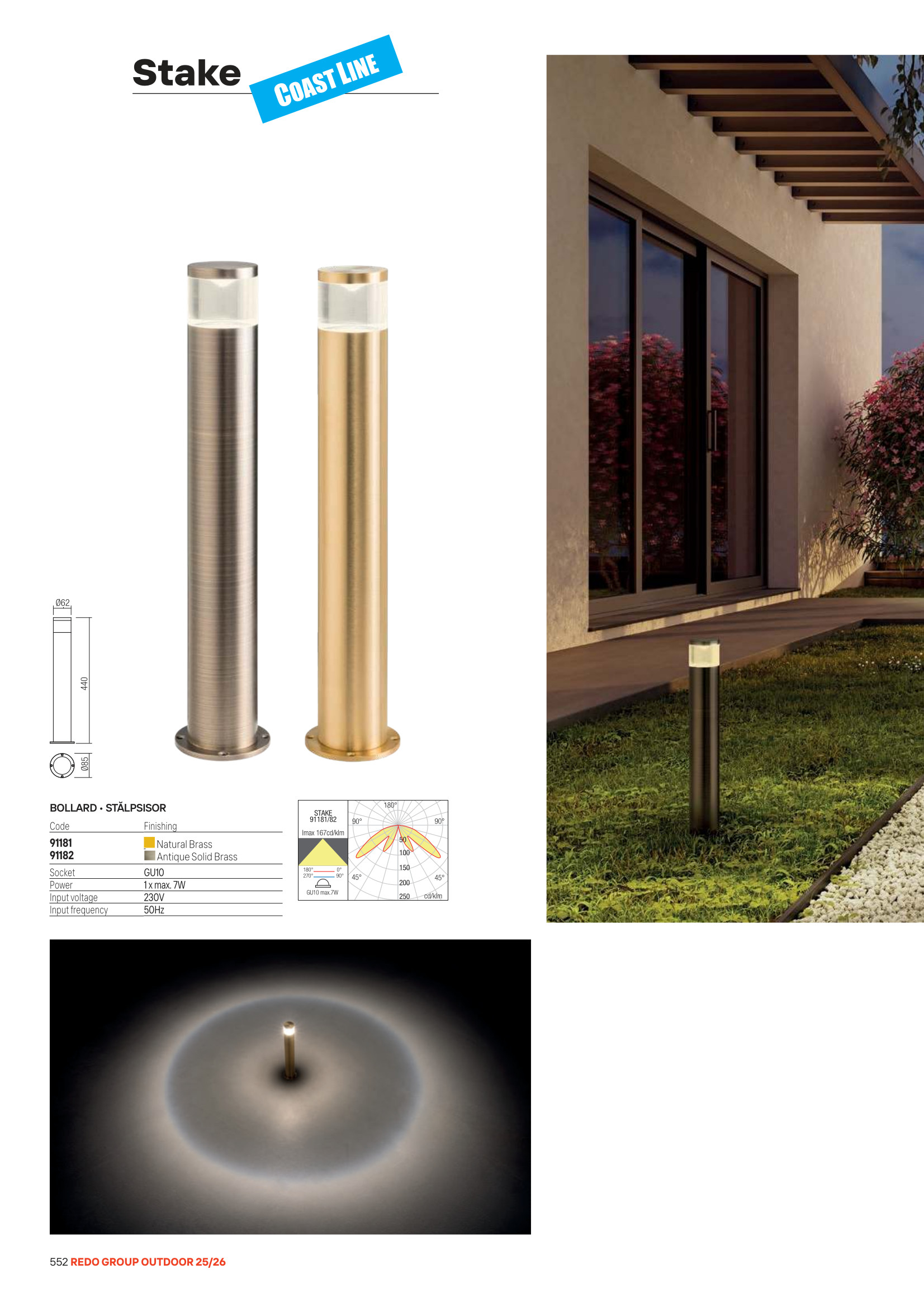 Стилът и естетиката на обстановката ще бъдат облагородени, както от цялостната визия и дизайн на осветителното тяло, така и от вложените в изработката на лампата висококачествени материали, като: масивен месинг със старинен вид, дифузер от прозрачно закалено стъкло, доставят се с аксесоар за монтаж в земята, захранващ кабел и IP68 конектор, възможност за монтаж по крайбрежието на морето.