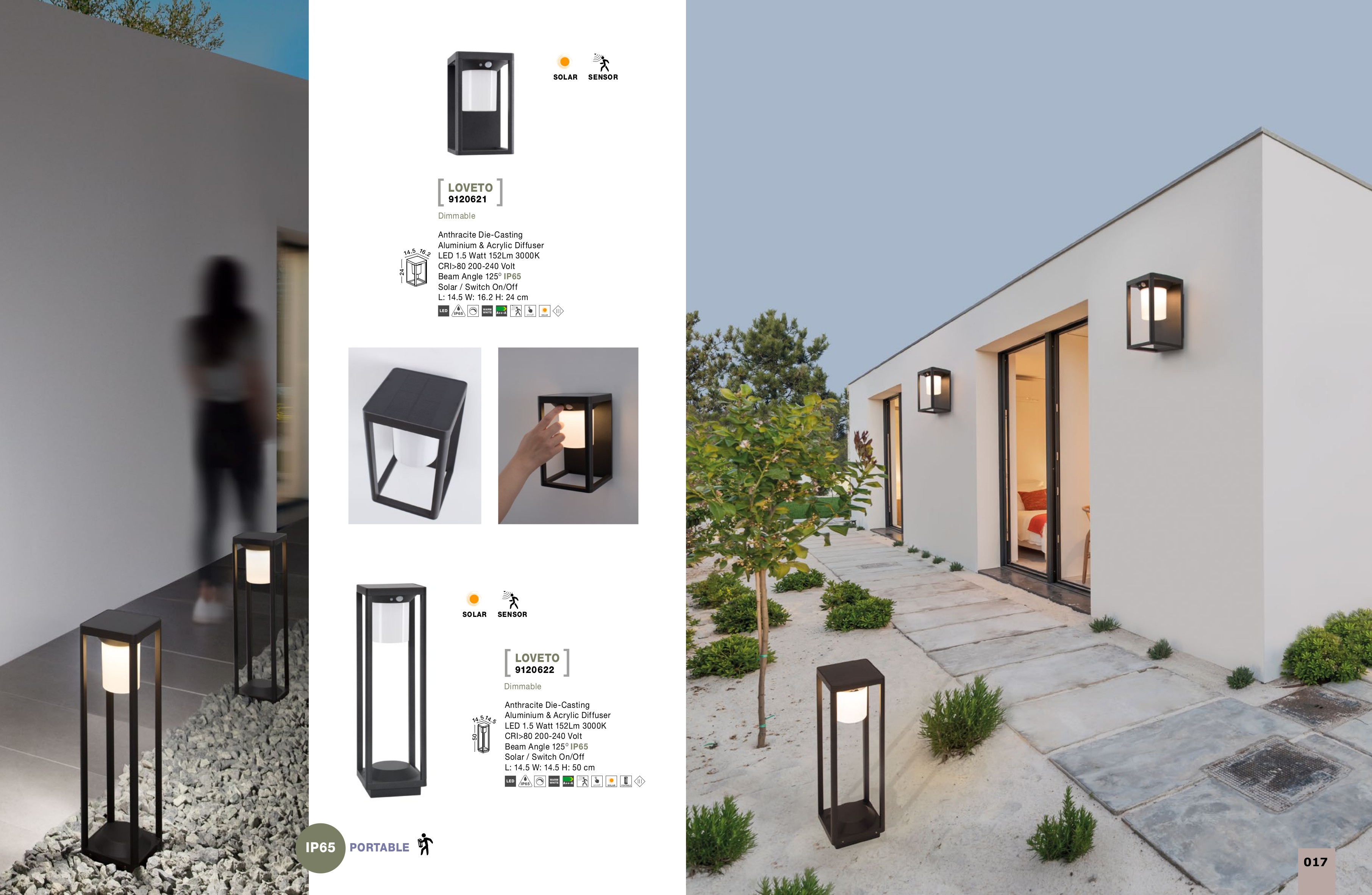 Осветителното тяло 9120621 ще осигури комфорт и естетика във всяко помещение, в което се постави. Цялостната визия и дизайн на лампата и вложените в изработката й материали, като лят алуминий в цвят антрацит, ключ ON/OFF, соларно зареждане, сензор, ще допринесат за един неповторим стил. Благодарение на дългогодишния опит, качествените материали и строгия контрол на качеството на изработка на производителя Nova-Luce (Гърция), 9120621 е на високо европейско ниво.