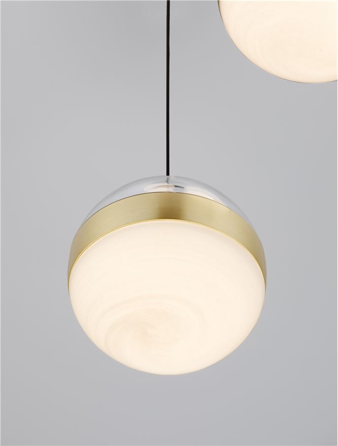 алуминий в матово черен цвят, стомана в цвят златен месинг, алабастрово стъкло, прозрачен полимер