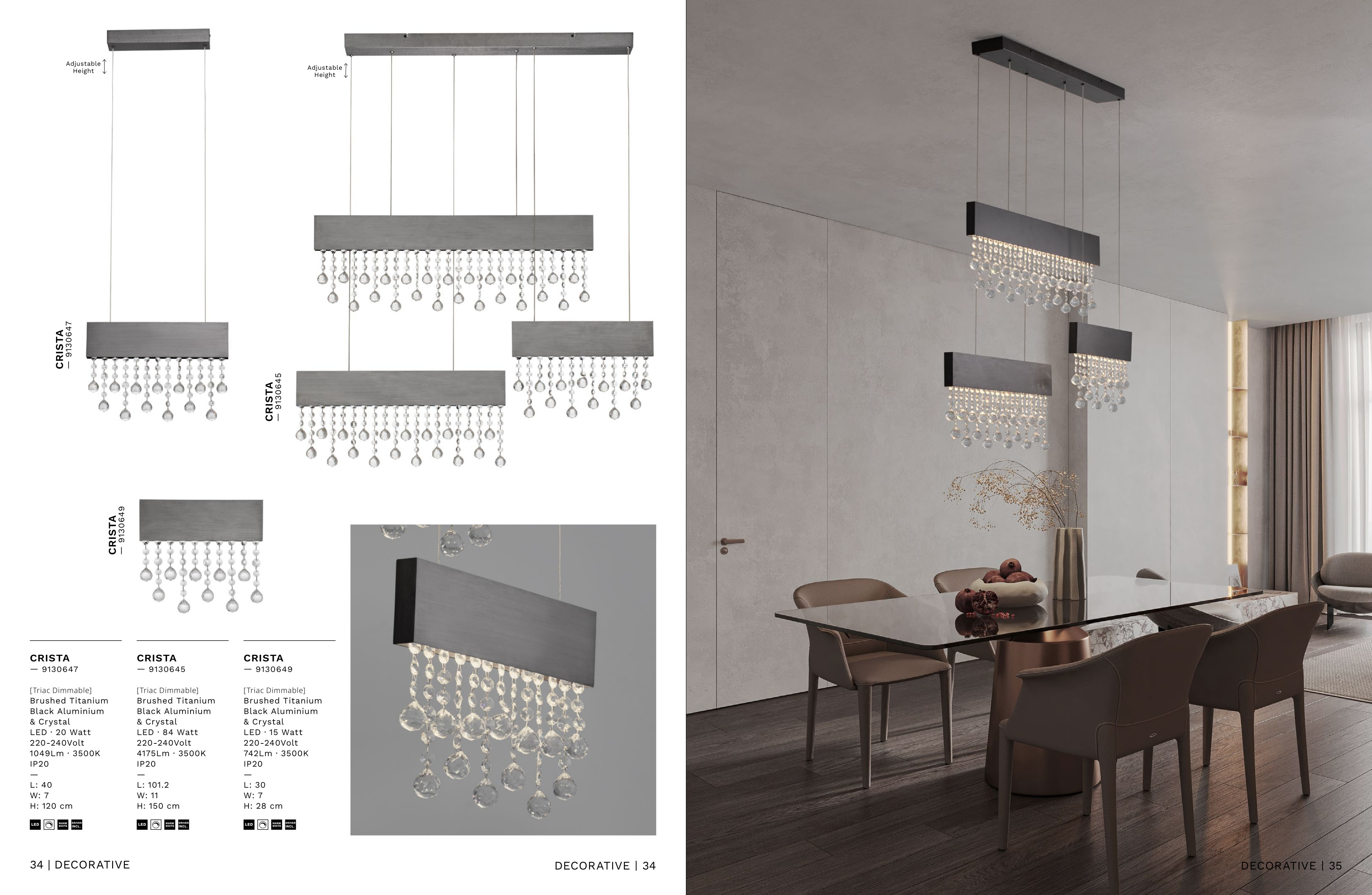 Лед полилей 9130647 ще осигури комфорт и естетика във всяко помещение, в което се постави. Цялостната визия и дизайн на led лампата и вложените в изработката й материали, като алуминий в цвят тъмен матиран титан, кристали, ще допринесат за един неповторим стил. Благодарение на дългогодишния опит в производството на лед осветление, качествените материали и строгия контрол на качеството на изработка на производителя Nova-Luce (Гърция), 9130647 е на високо европейско ниво.