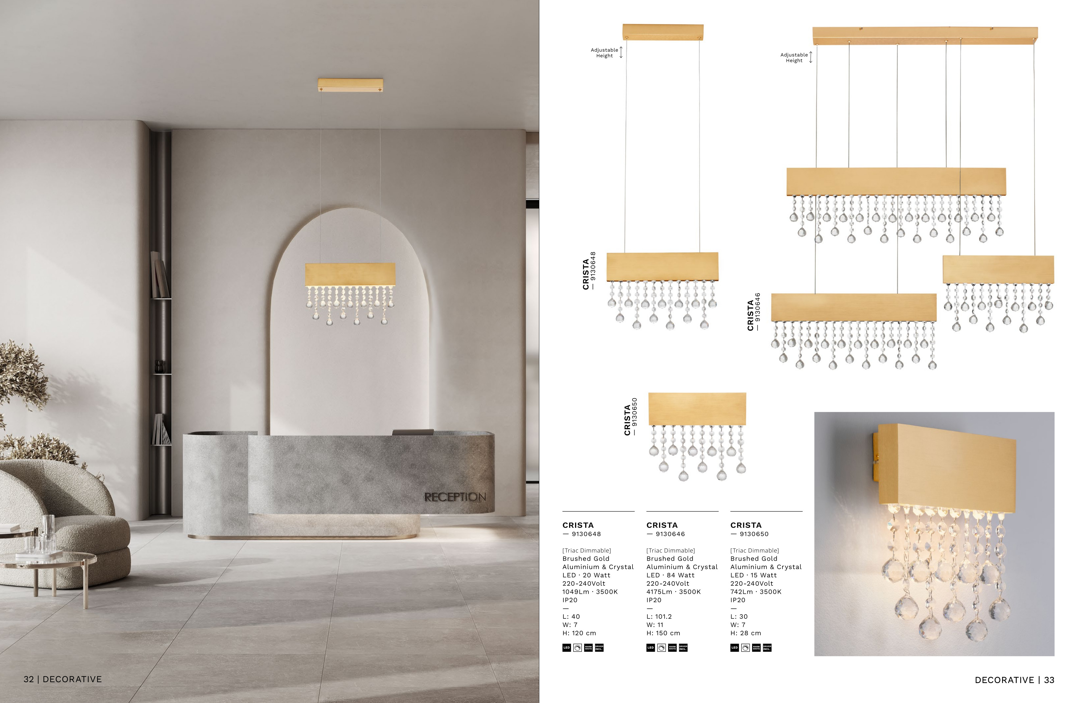 Лед полилей 9130648 ще осигури комфорт и естетика във всяко помещение, в което се постави. Цялостната визия и дизайн на led лампата и вложените в изработката й материали, като алуминий в цвят матирано злато, кристали, ще допринесат за един неповторим стил. Благодарение на дългогодишния опит в производството на лед осветление, качествените материали и строгия контрол на качеството на изработка на производителя Nova-Luce (Гърция), 9130648 е на високо европейско ниво.