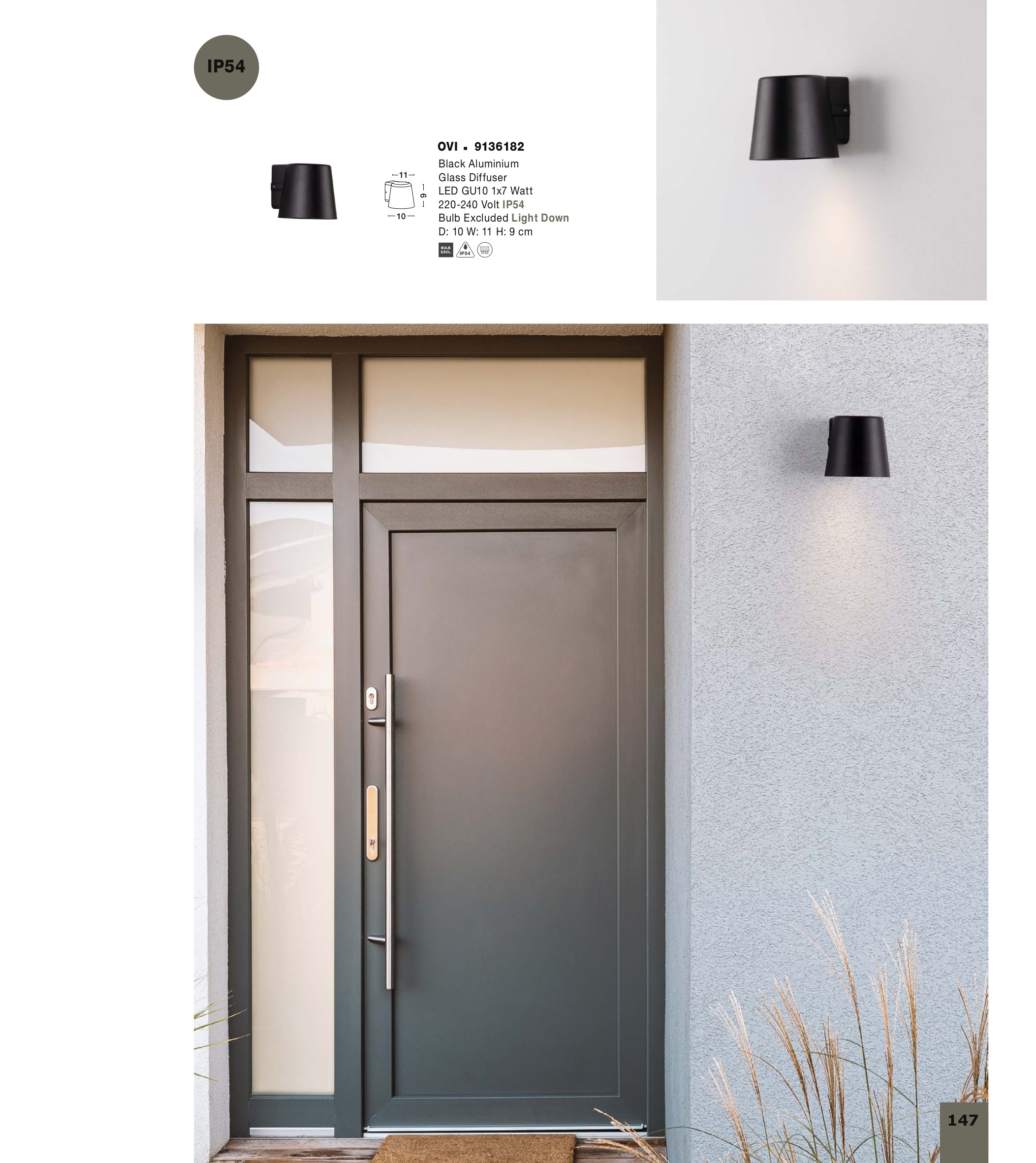 Осветителното тяло 9136182 представлява аплик, външна лампа в съвременен стил. 9136182 е от категорията осветителни тела и е подходящо за осветяване на различни помещения и пространства като: външно осветление, фасадно осветление.