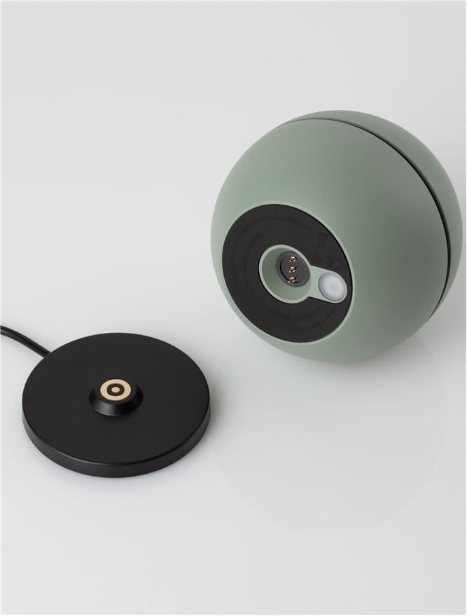 алуминий в цвят зелен чай, полимер, ССТ 2200-2700-3000K, димиране чрез докосване, зареждане чрез база, включена в комплекта
