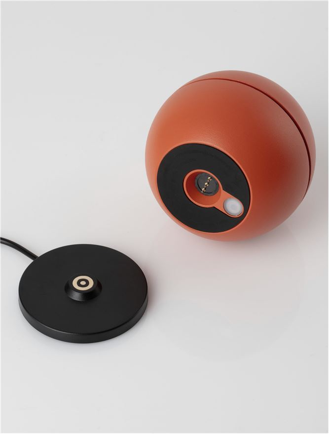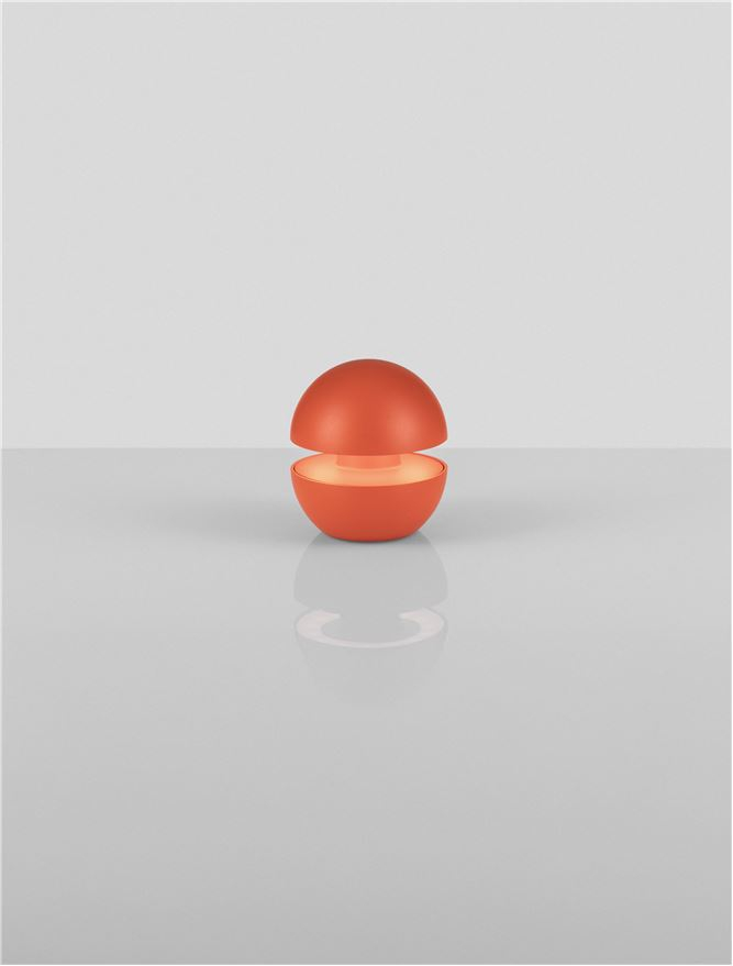 алуминий в оранжев цвят, полимер, ССТ 2200-2700-3000K, димиране чрез докосване, зареждане чрез база, включена в комплекта
