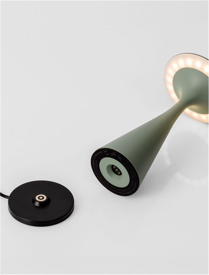 Осветителното тяло 9136454 ще осигури комфорт и естетика във всяко помещение, в което се постави. Цялостната визия и дизайн на лампата и вложените в изработката й материали, като алуминий в цвят зелен чай, полимер, индивидуална зареждаща подложка, включена в комплекта, димиране чрез докосване, сигнал за слаба батерия, ССТ 2200-2700-3000K, ще допринесат за един неповторим стил. Благодарение на дългогодишния опит, качествените материали и строгия контрол на качеството на изработка на производителя Nova-Luce (Гърция), 9136454 е на високо европейско ниво.