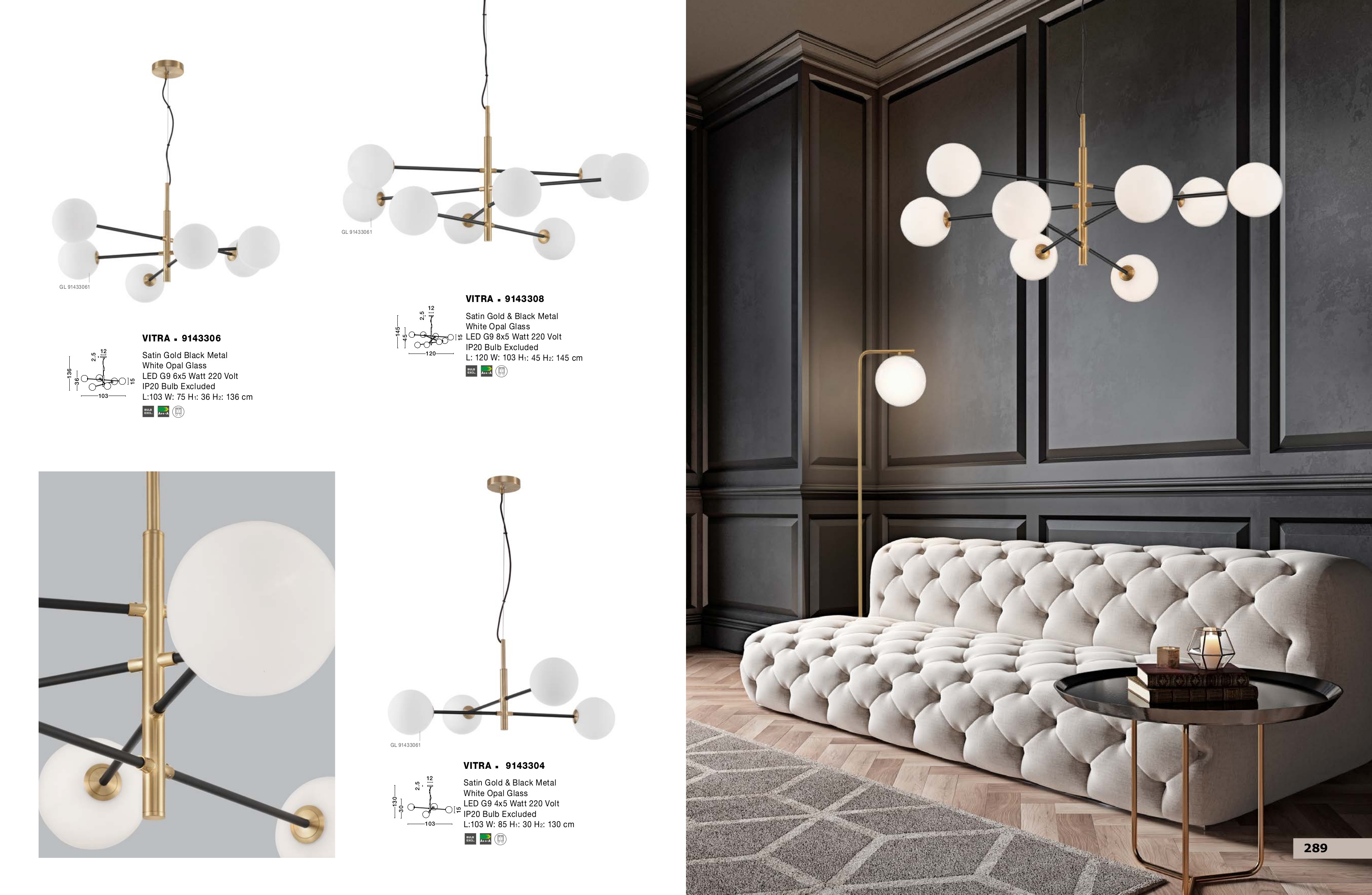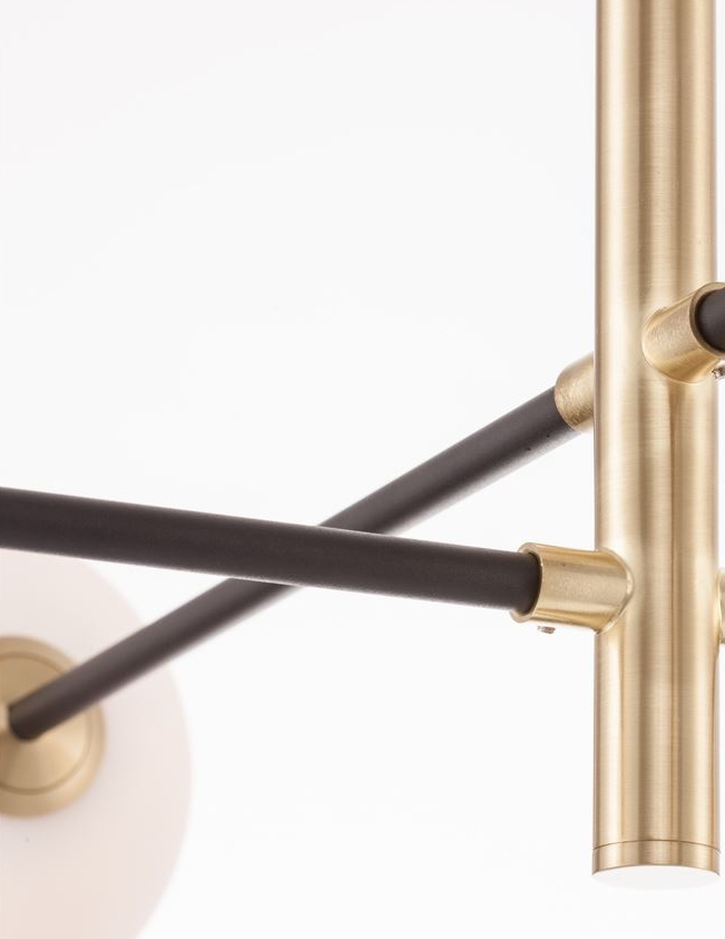 За стила и естетиката на интериора допринасят, както цялостната визия и дизайн на осветителното тяло, така и вложените от производителя в изработката висококачествени материали, като метал в цвят сатенирано злато, метал в черен цвят, стъкло в цвят опалово бяло.
