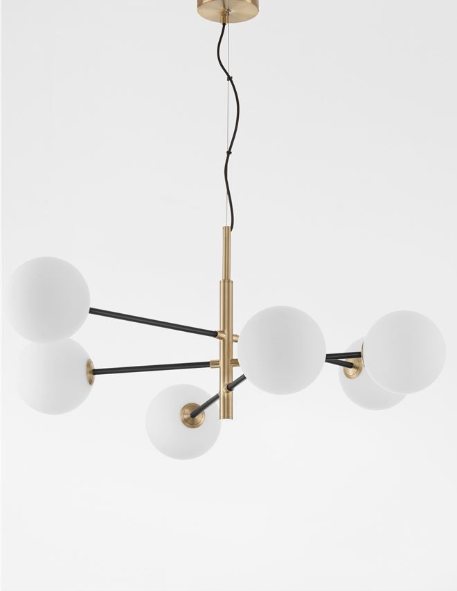 Осветителното тяло 9143306 ще осигури комфорт и естетика във всяко помещение, в което се постави. Цялостната визия и дизайн на лампата и вложените в изработката й материали, като метал в цвят сатенирано злато, метал в черен цвят, стъкло в цвят опалово бяло, ще допринесат за един неповторим стил. Благодарение на дългогодишния опит, качествените материали и строгия контрол на качеството на изработка на производителя Nova-Luce (Гърция), 9143306 е на високо европейско ниво.