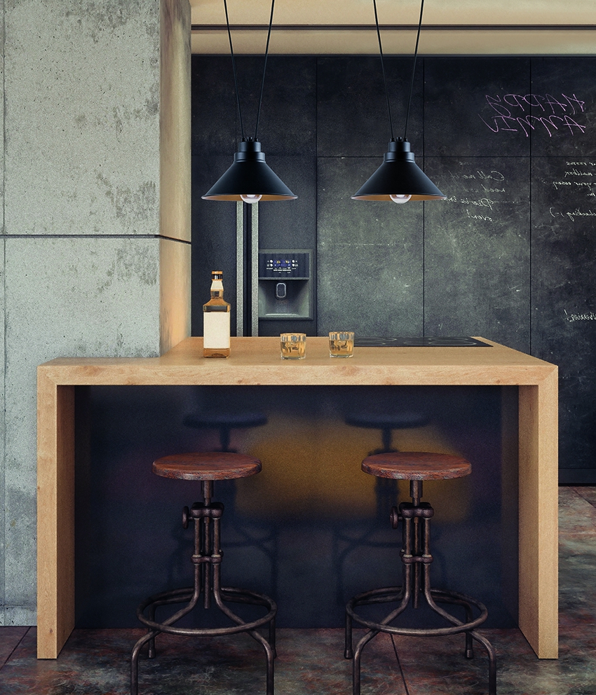 За стила и естетиката на интериора допринасят, както цялостната визия и дизайн на осветителното тяло, така и вложените от производителя в изработката висококачествени материали, като стомана в черно и златисто.