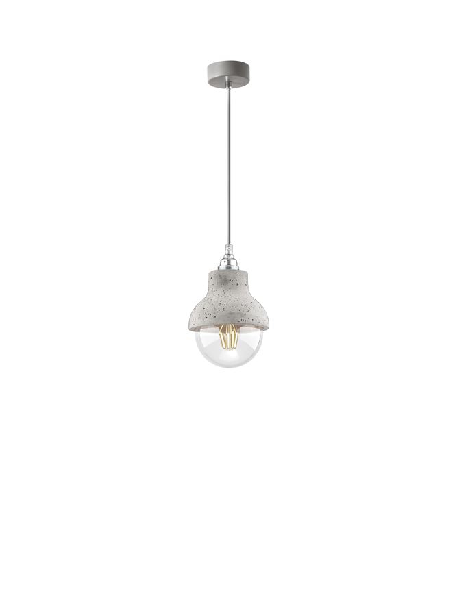 Стилът и естетиката на обстановката ще се обогатят благодарение, както на цялостната визия и дизайн на осветителното тяло, така и на вложените в изработката му, качествени материали, като: сив бетон, кабел със сива текстилна оплетка.