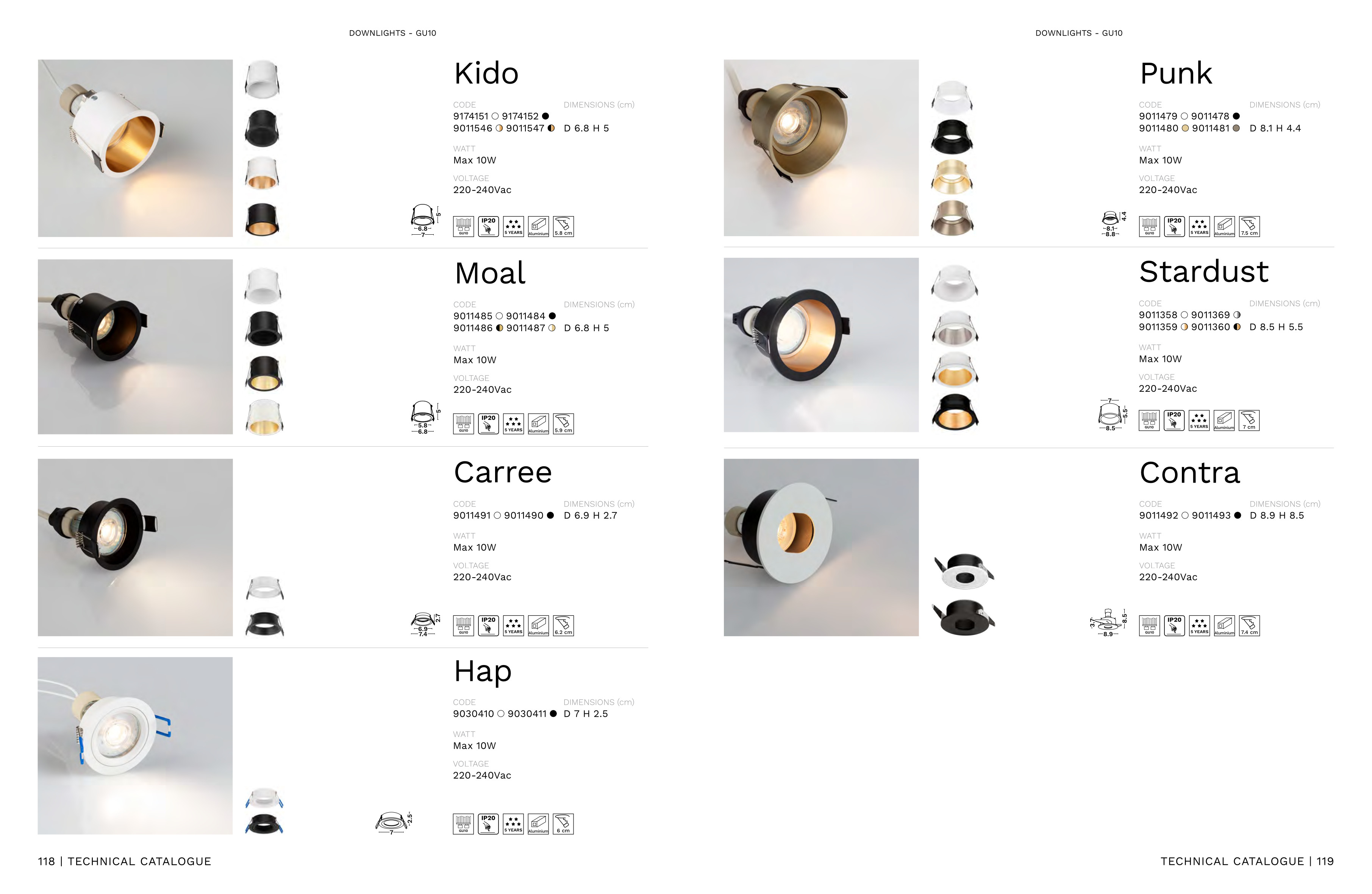 Този вид фасунга се използва главно в осветителни тела тип "спот" или "луничка" с халогенни светлоизточници (подходяща е също и за енергоспестяващи и светодиодни (LED)). Работното напрежение е 220V