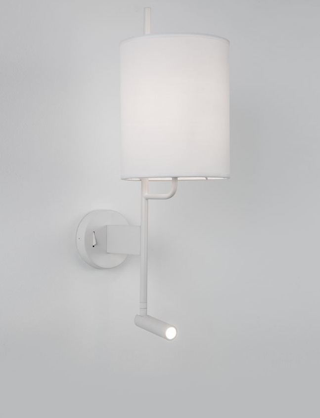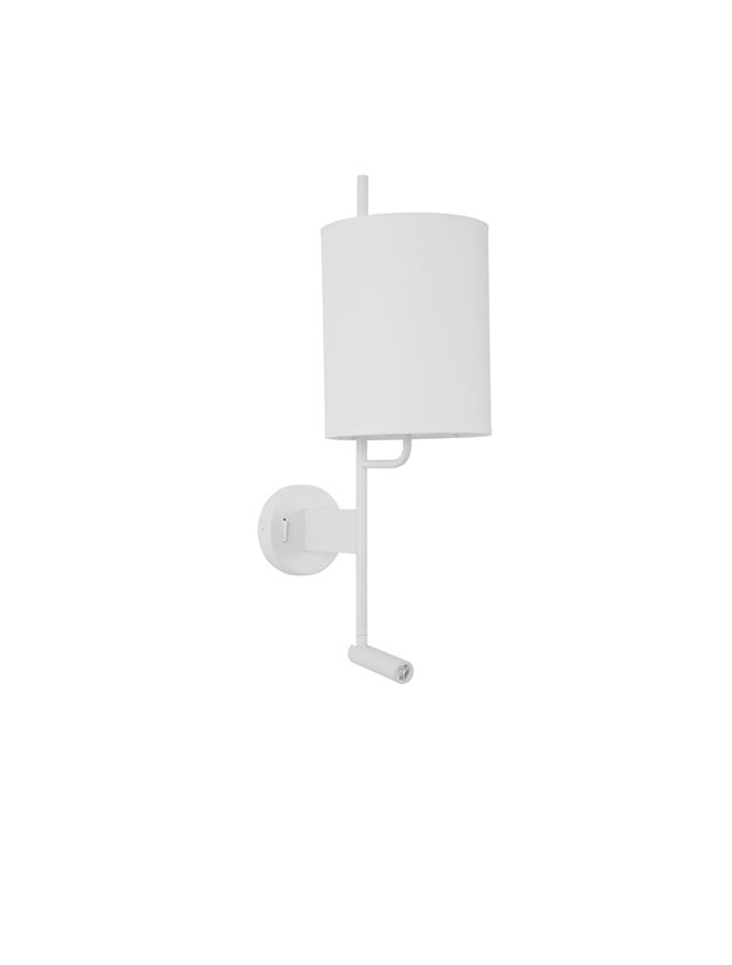 алуминий в бял цвят, абажур от бял текстил, ключ ON/OFF