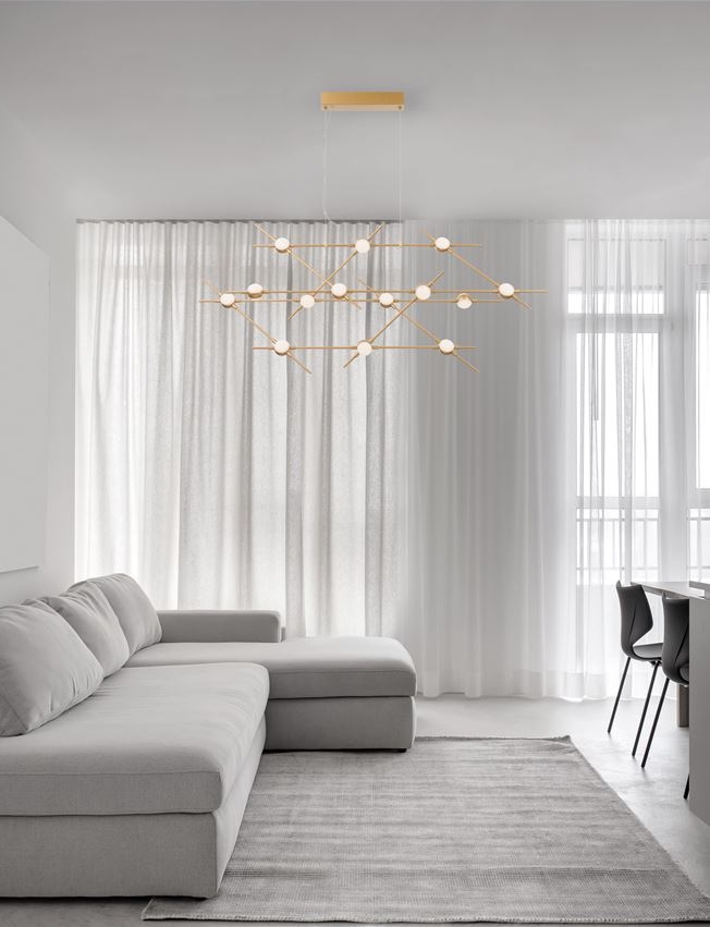 Осветителното тяло 9180614 представлява полилей в съвременен, дизайнерски стил. 9180614 е от категорията осветителни тела и е подходящо за осветяване на различни помещения и пространства като: всекидневна / хол, спалня, кухня, трапезария, офис.