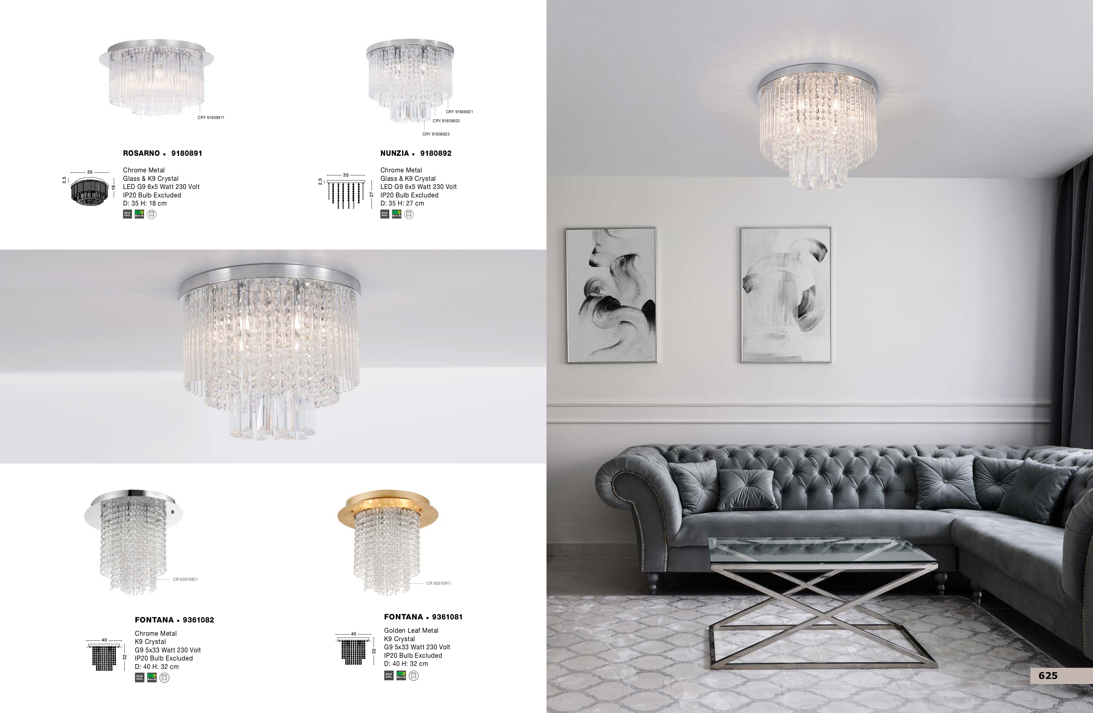 Осветителното тяло 9180891 ще осигури комфорт и естетика във всяко помещение, в което се постави. Цялостната визия и дизайн на лампата и вложените в изработката й материали, като хромиран метал, стъклени висулки, К9 кристали, ще допринесат за един неповторим стил. Благодарение на дългогодишния опит, качествените материали и строгия контрол на качеството на изработка на производителя Nova-Luce (Гърция), 9180891 е на високо европейско ниво.