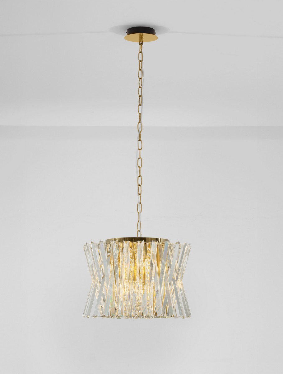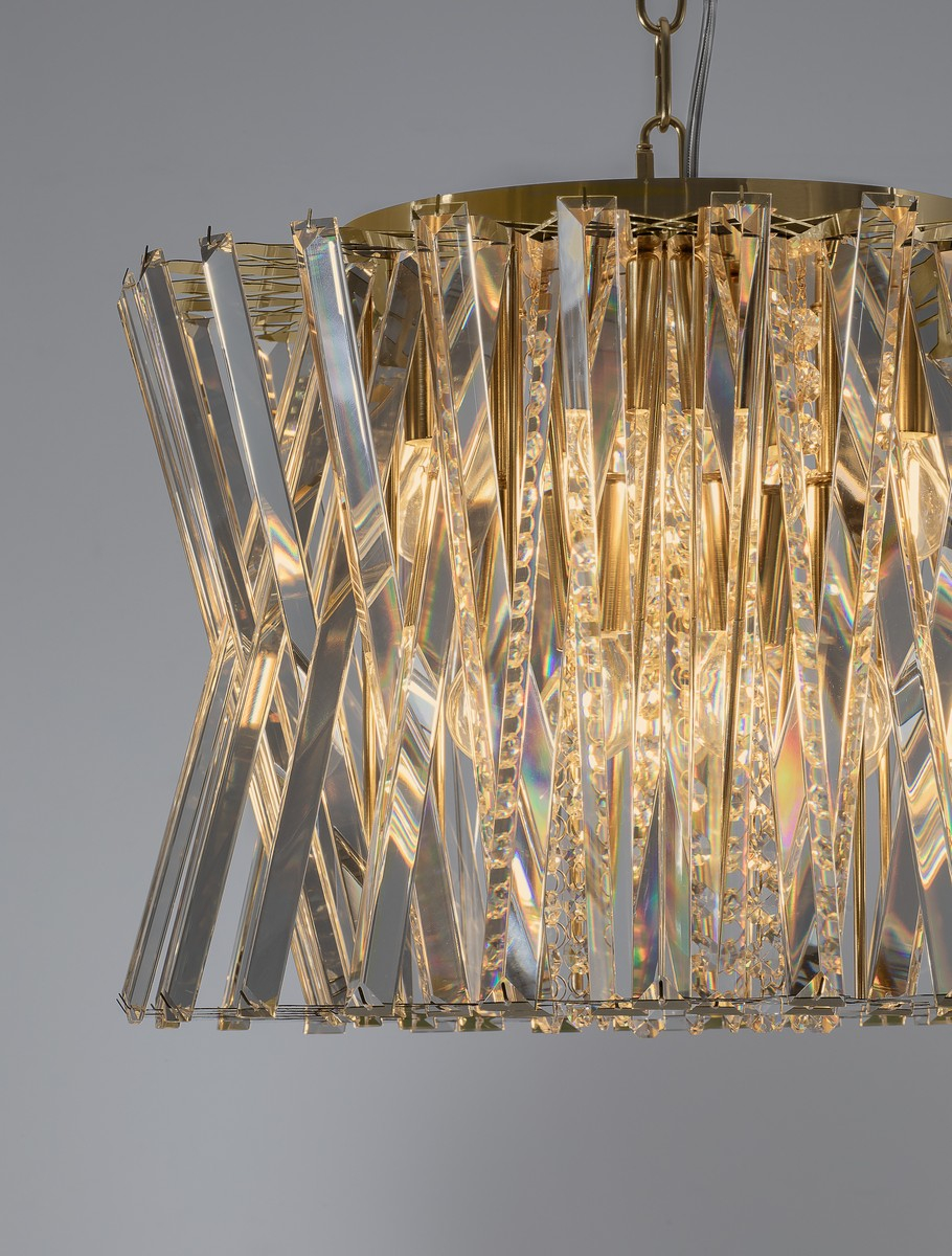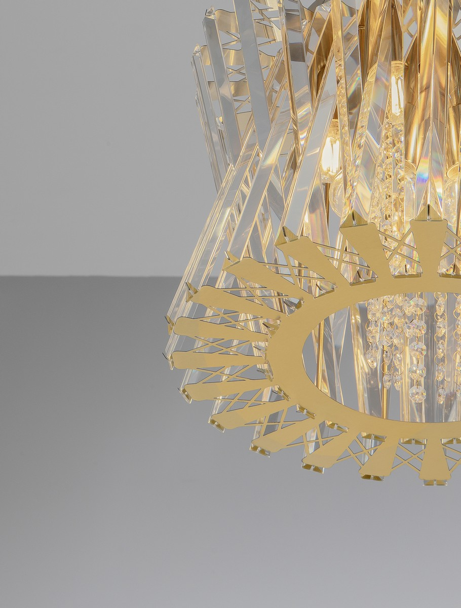 метал в цвят сатен месинг, прозрачни кристални призми