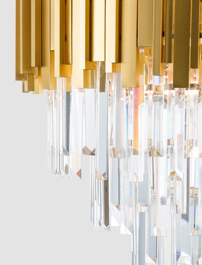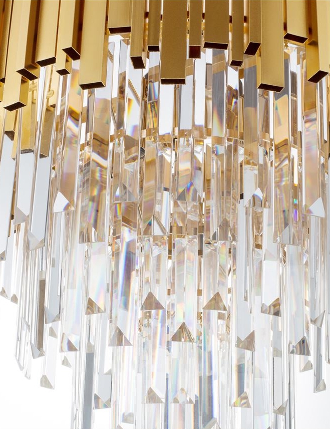 За стила и естетиката на интериора допринасят, както цялостната визия и дизайн на осветителното тяло, така и вложените от производителя в изработката висококачествени материали, като метал в цвят злато, кристали.